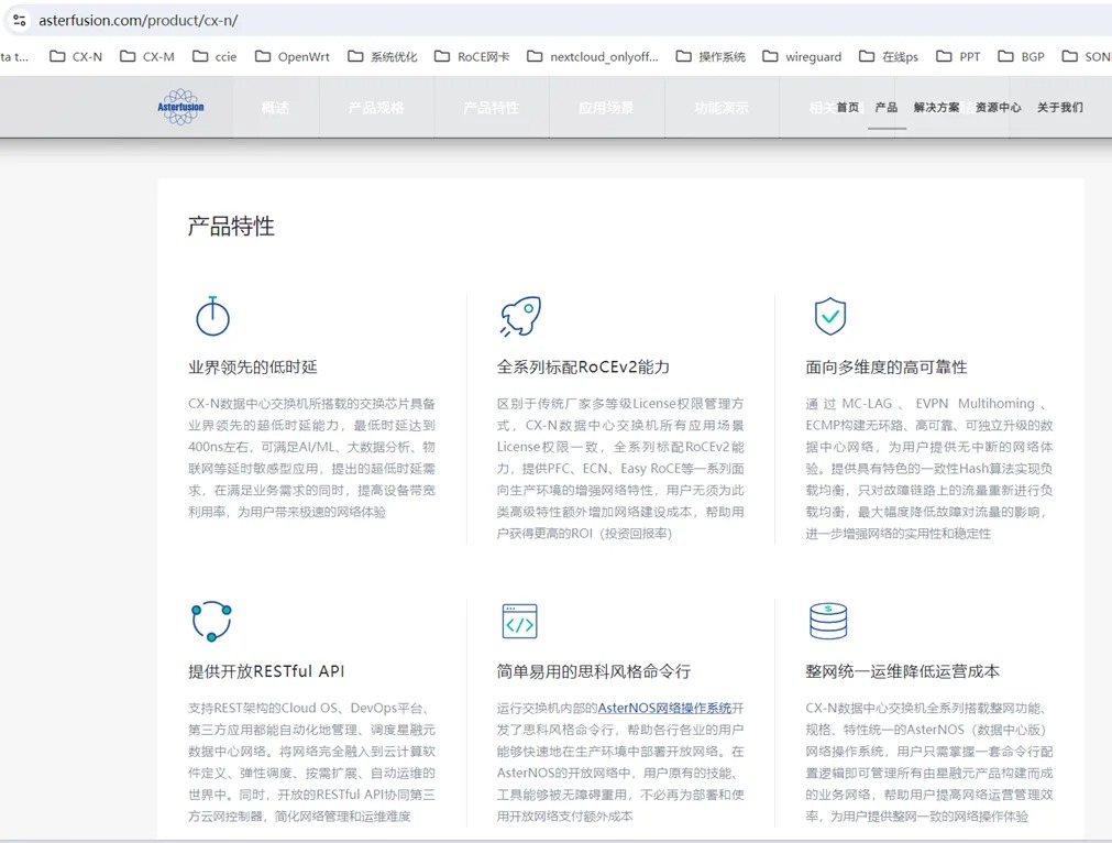 超低时延交换机产品特性的片段如下。