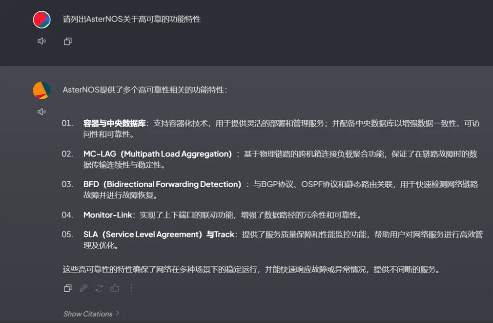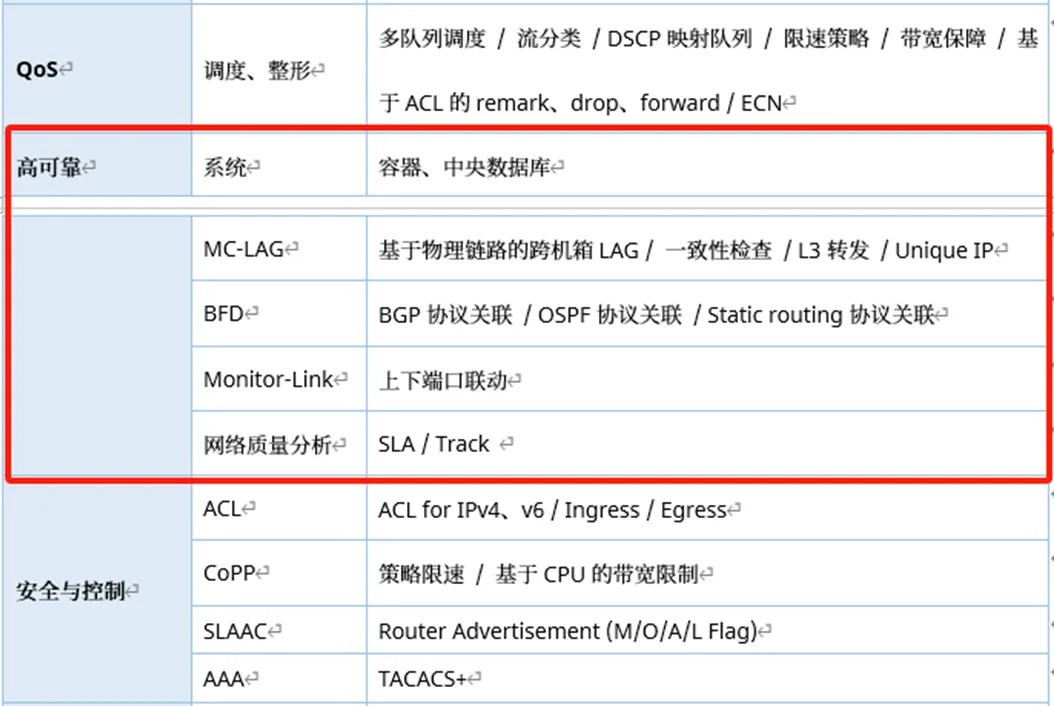原始数据是星融元AsterNOS网络操作系统的文档,其中涉及到高可靠特性的部分如下。