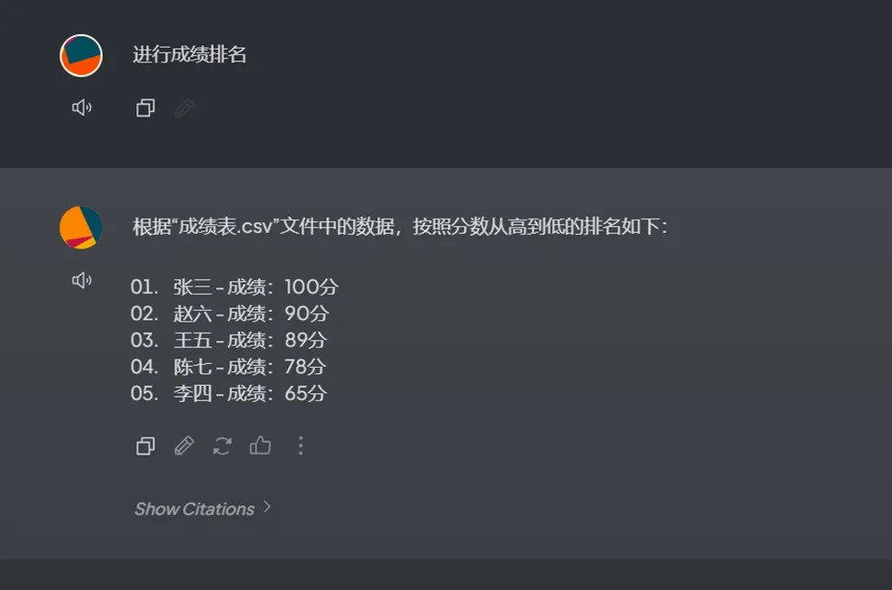 对话结果(对数据进行排序和筛选):