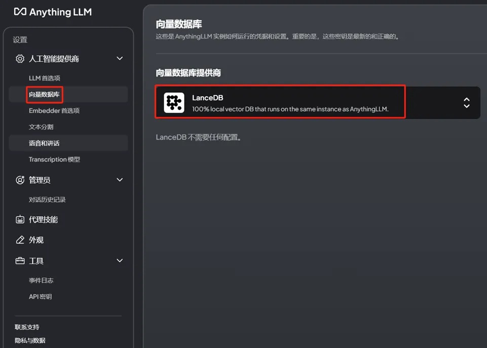 向量数据库选择LanceDB(默认)