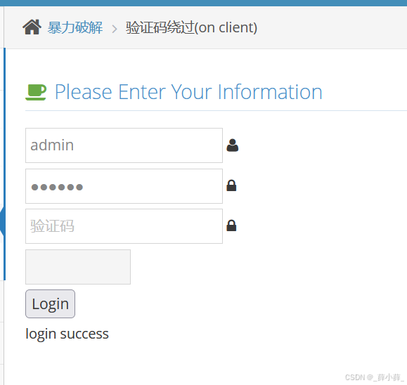 字典爆破得到username:adminpassword:123456无需输入验证码,直接登录。接下来就好办了,直接F12+F1,禁用JavaScript,绕过验证码验证。又是一个验证码绕过,ctrl+U查看源码,发现验证码的验证是在前端。剩余步骤同第一篇文章—