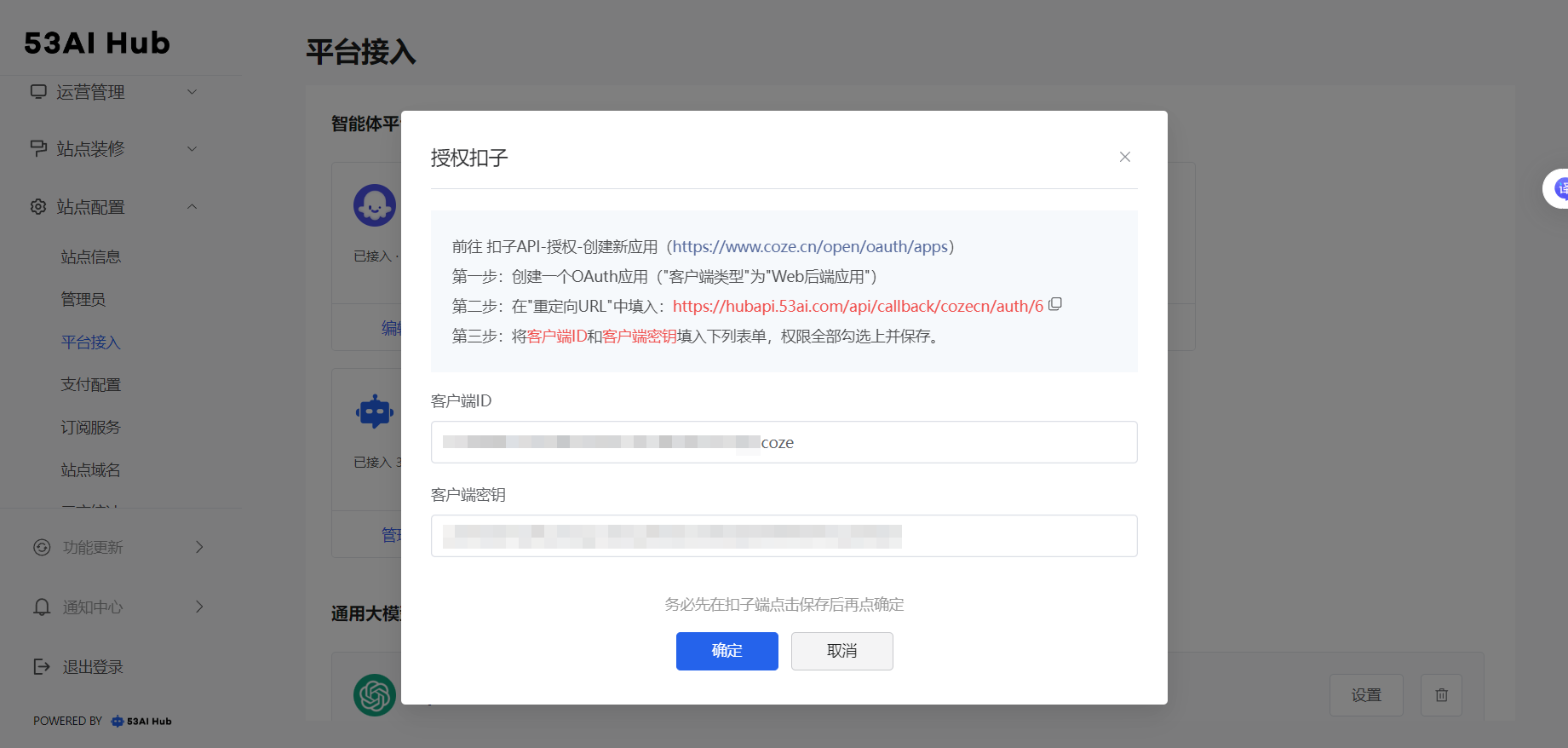 比如我试着把自己在扣子平台上配置好的“市场调研助手”接入到 53AI Hub,只用 3 步:
