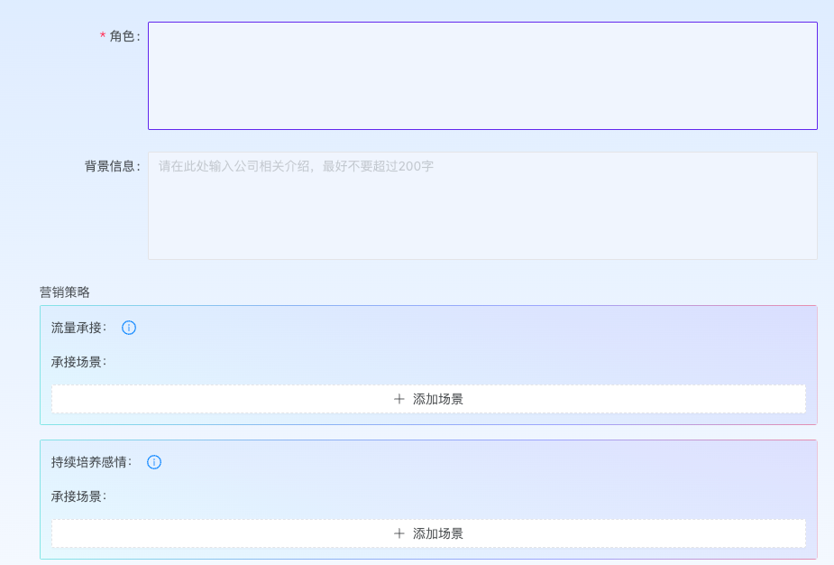 设计了这些通用策略后,我们做了一个后台,运营人员往这些策略里填上每个每家客户独有的场景,话术示例就行了。