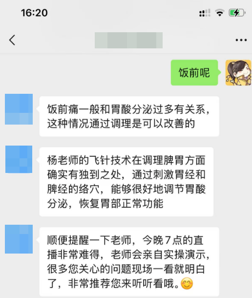 我们有一个做中医课程的客户,他们的客服场景就很简单:引导用户进入今晚的直播间。