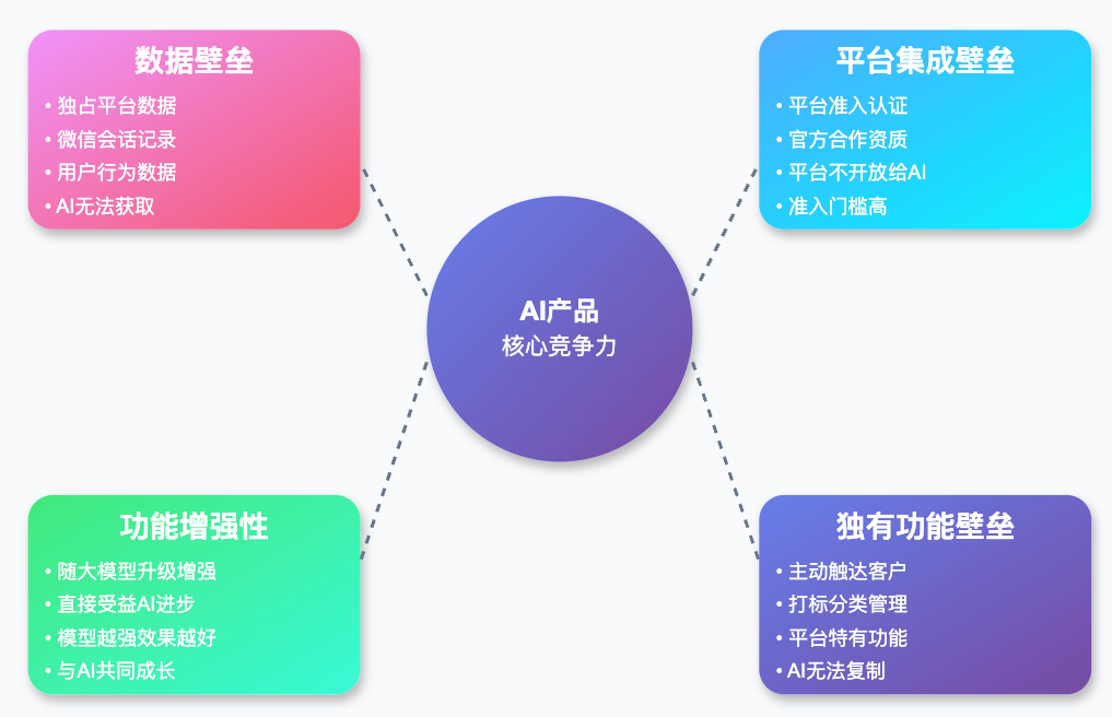 更重要的是,我们认识到,一个成功的 AI 产品,必须拥有 AI 无法轻易触及的壁垒——无论是独特的业务数据,还是与特定平台的深度整合。它应该随着 AI 的进步而变得更强,而非被其替代。