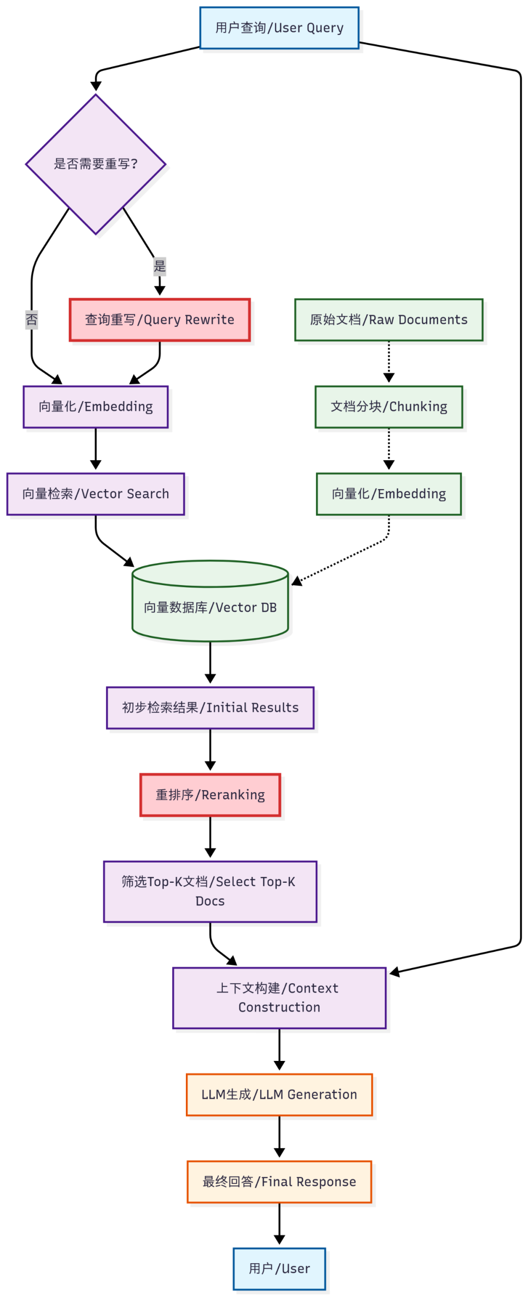 这里我想重点强调一下重写(rewrite)和重排序(Reranking)两个阶段。