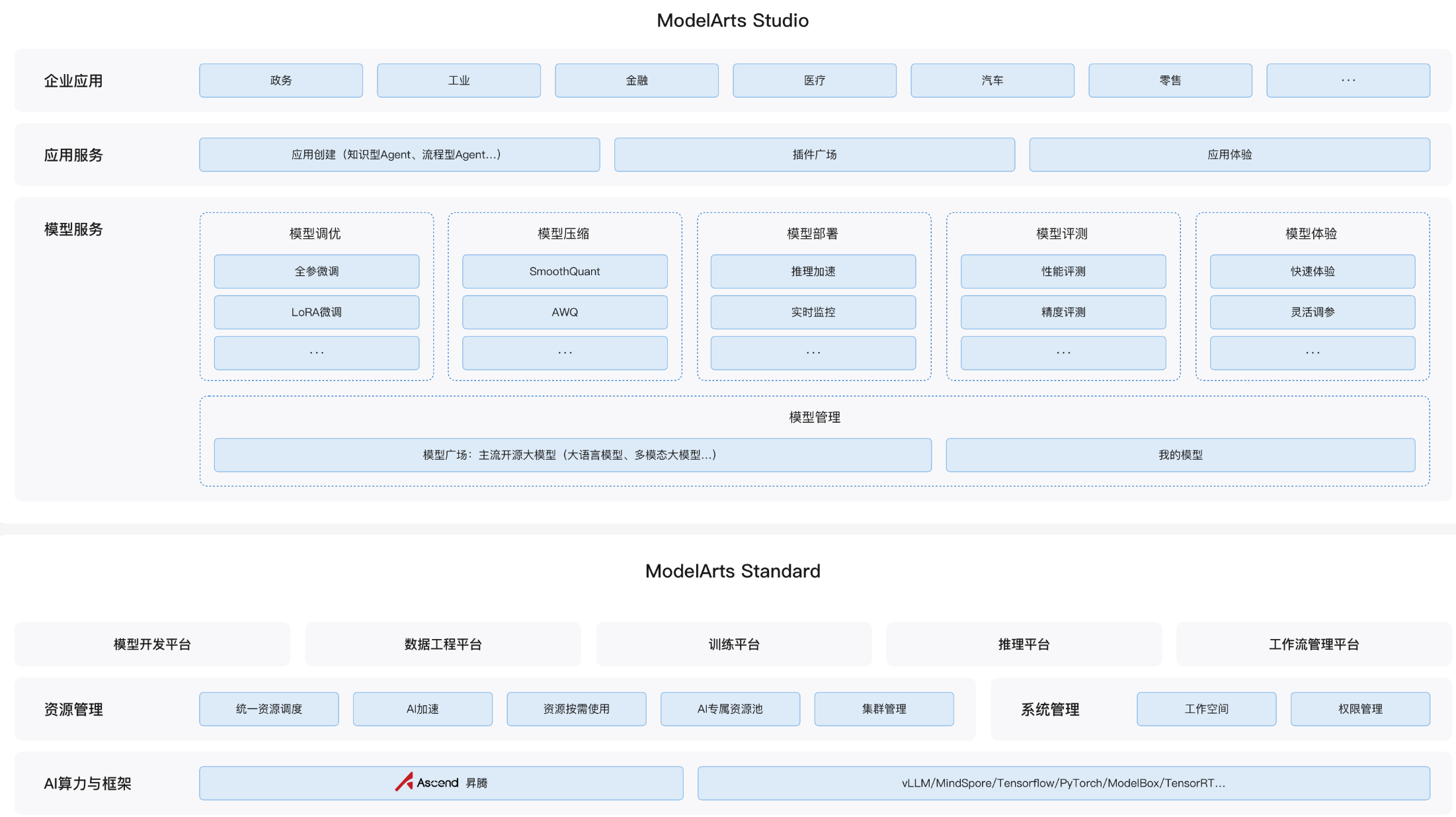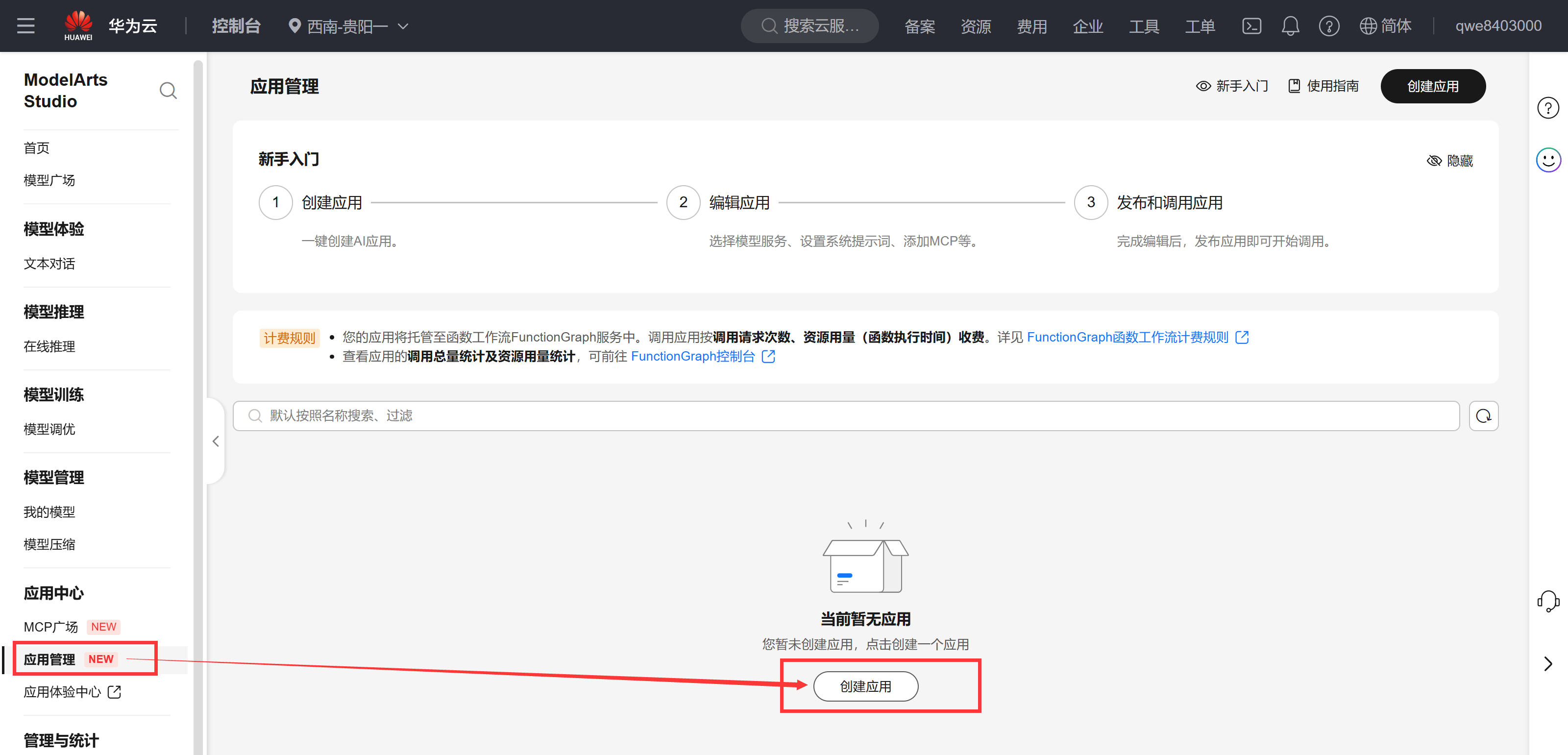 对于ModelArts Studio的整体架构来说,我们在应用服务的应用体验上就能找到我们要做的事情了。