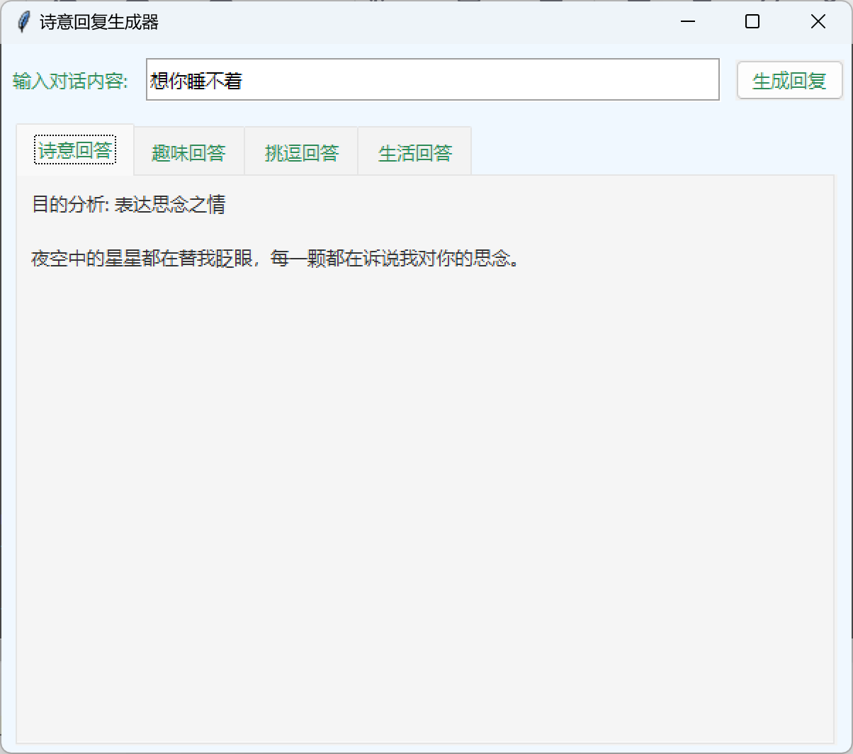 tabs = ["诗意回答", "趣味回答", "挑逗回答", "生活回答"]