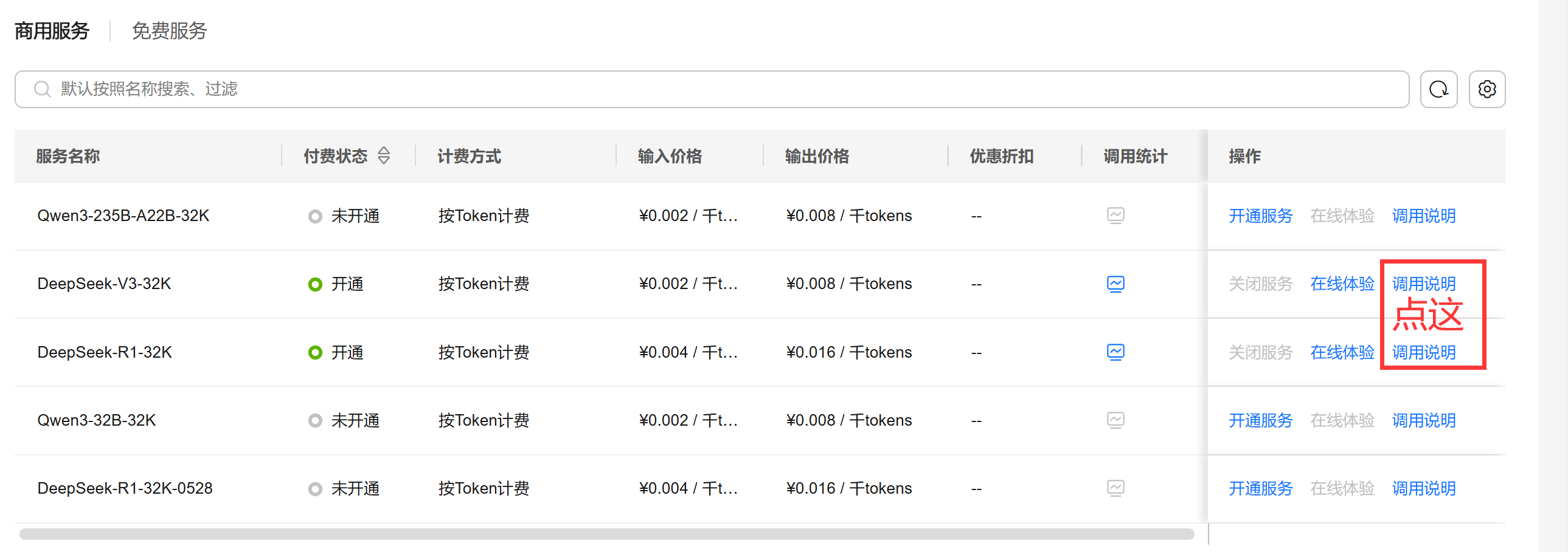 在这里我们能看到对应的Token计费方式,相对价格来说还是很低廉的。