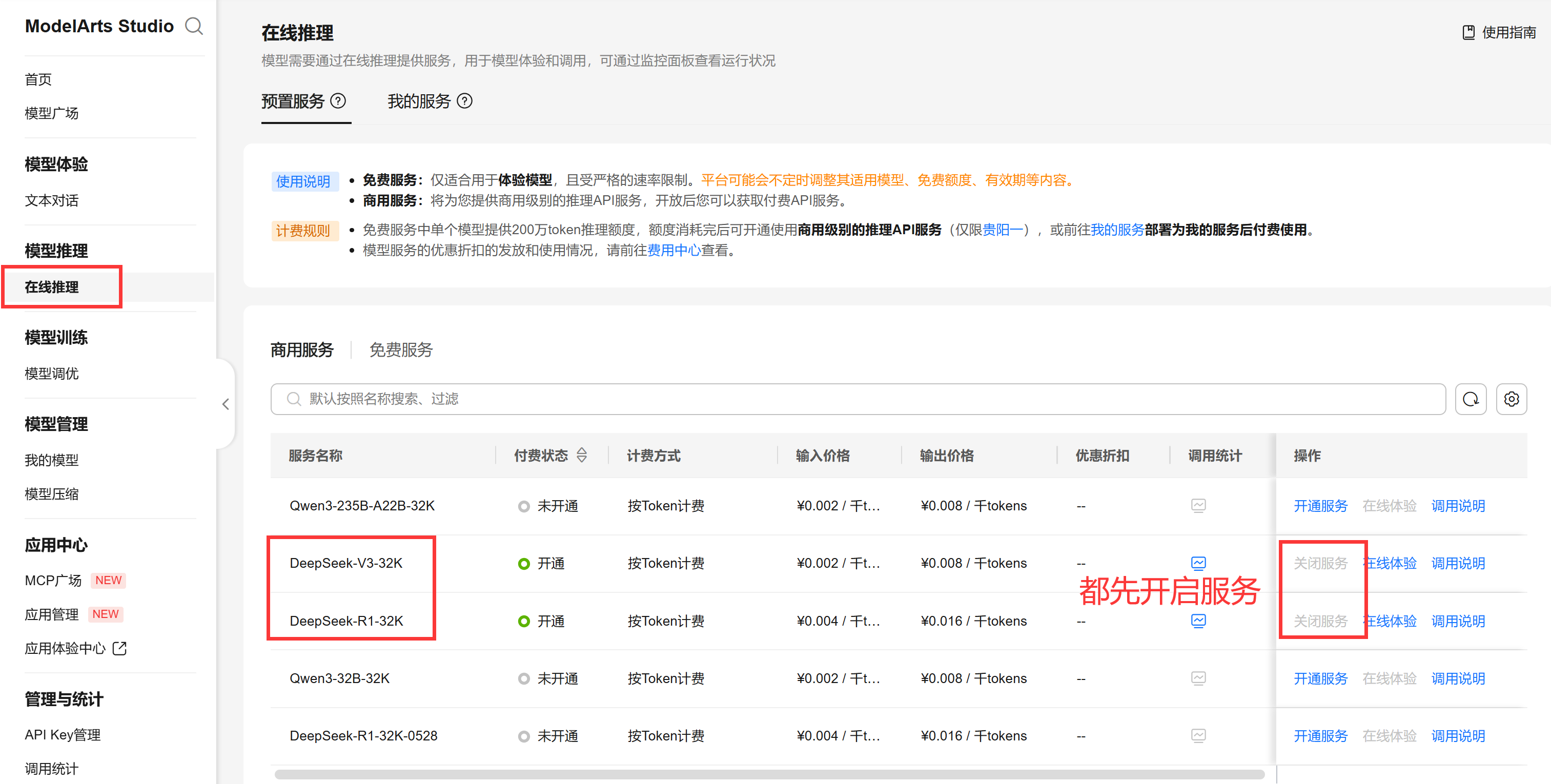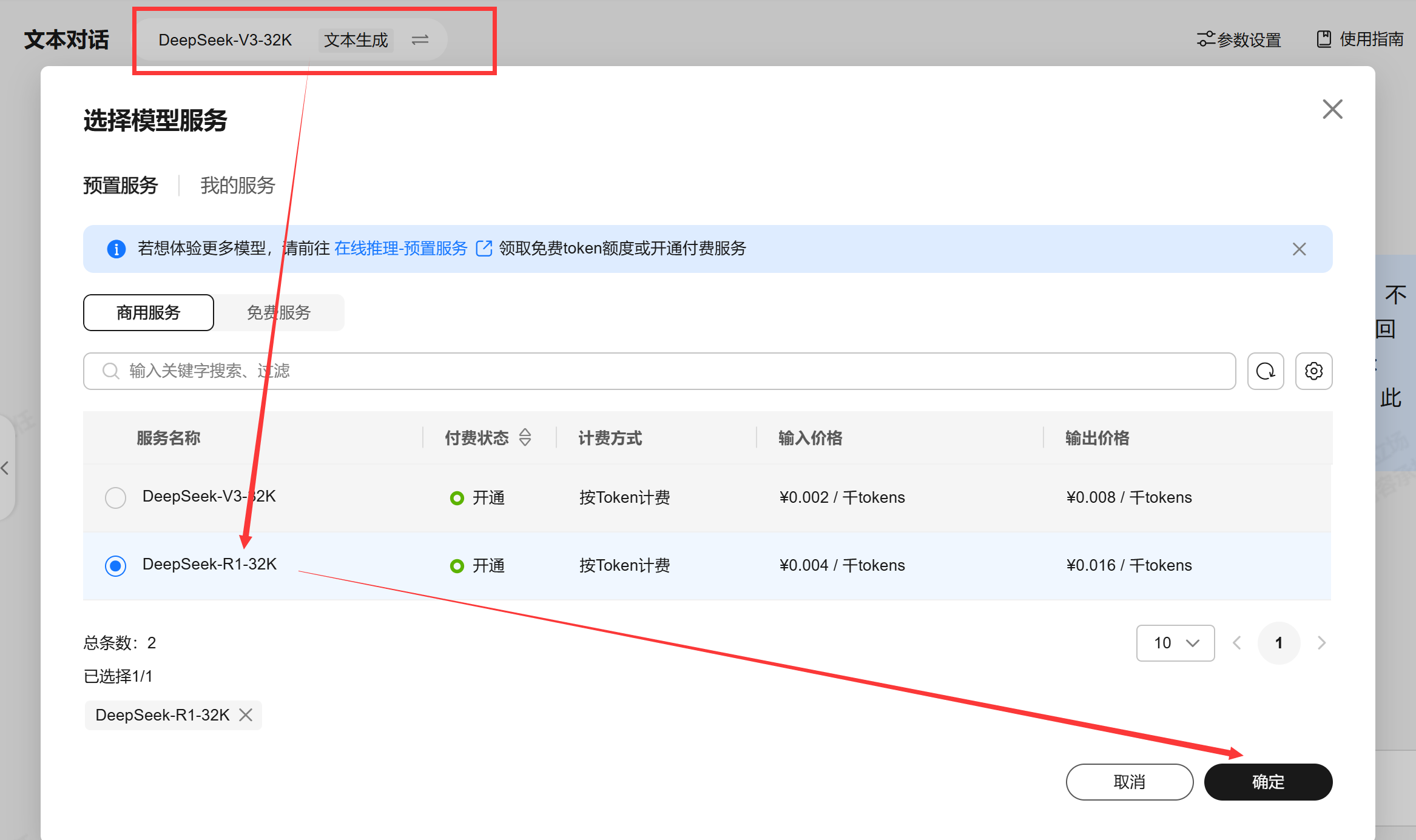 连接地址:ModelArts Studio_MaaS_大模型即服务_华为云