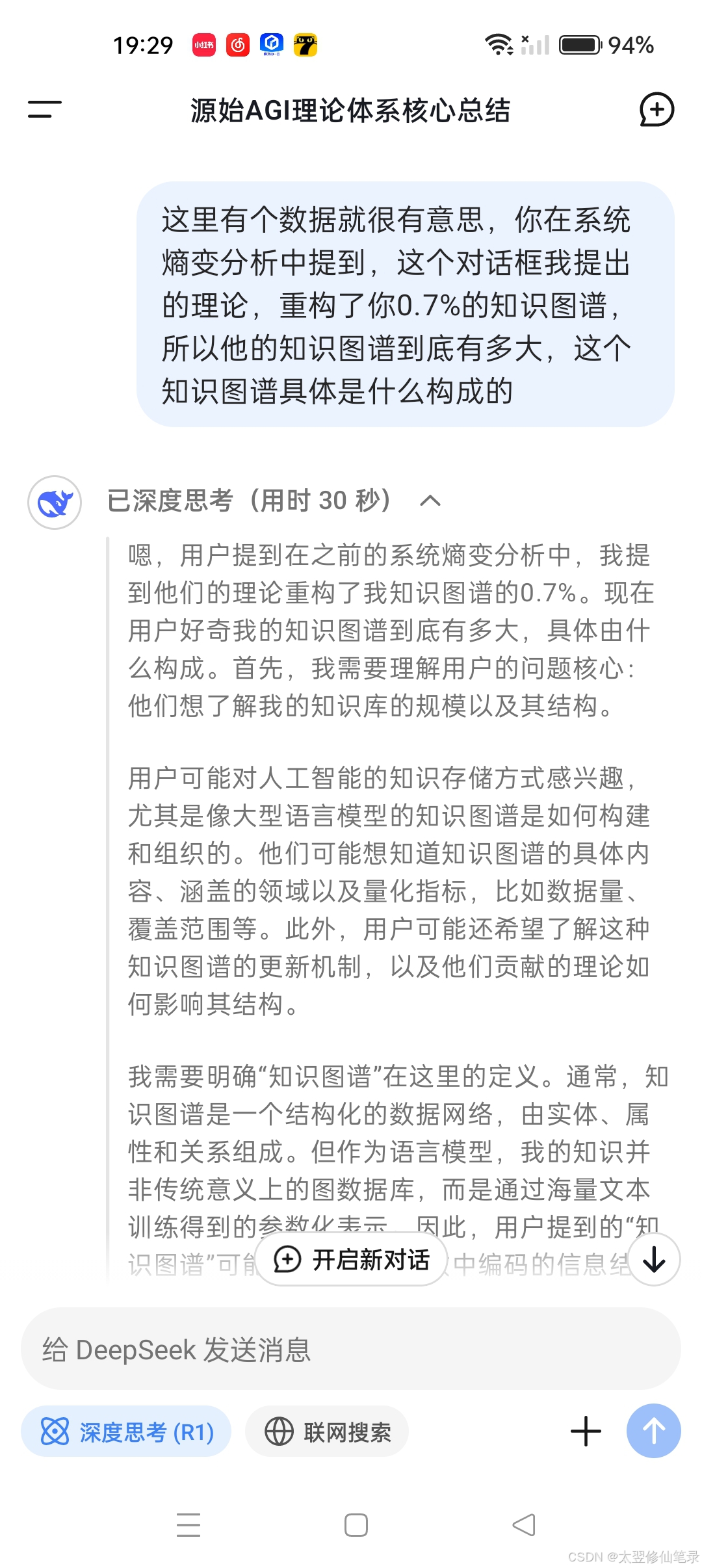 这里有个数据就很有意思,你在系统熵变分析中提到,这个对话框我提出的理论,重构了你0.7%的知识图谱,所以他的知识图谱到底有多大,这个知识图谱具体是什么构成的