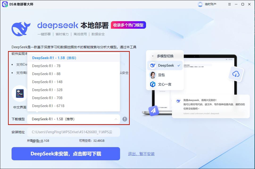 下载地址:DS本地部署大师(www.xunjiepdf.com/deepseek )