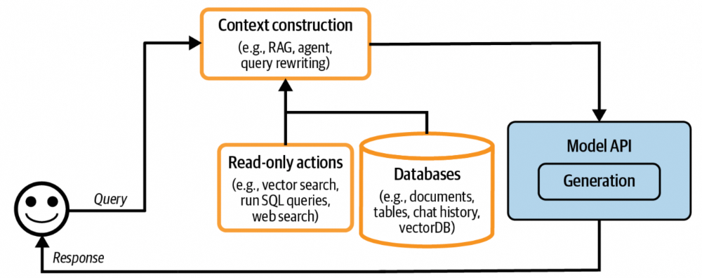 本文通过一条AI应用架构演进的路线(图来自《AI Engineering》),来描述和记录每一次演进增加的架构内容以及概述涉及到的相关技术,从而帮助自己以及可能有需要的同学按照一定的脉络整理LLM和AI应用快速发展下不断迸发的新设计和新技术,再者为后续可能的关于AI应用架构和传统应用架构的异同的主题探讨做些调研。