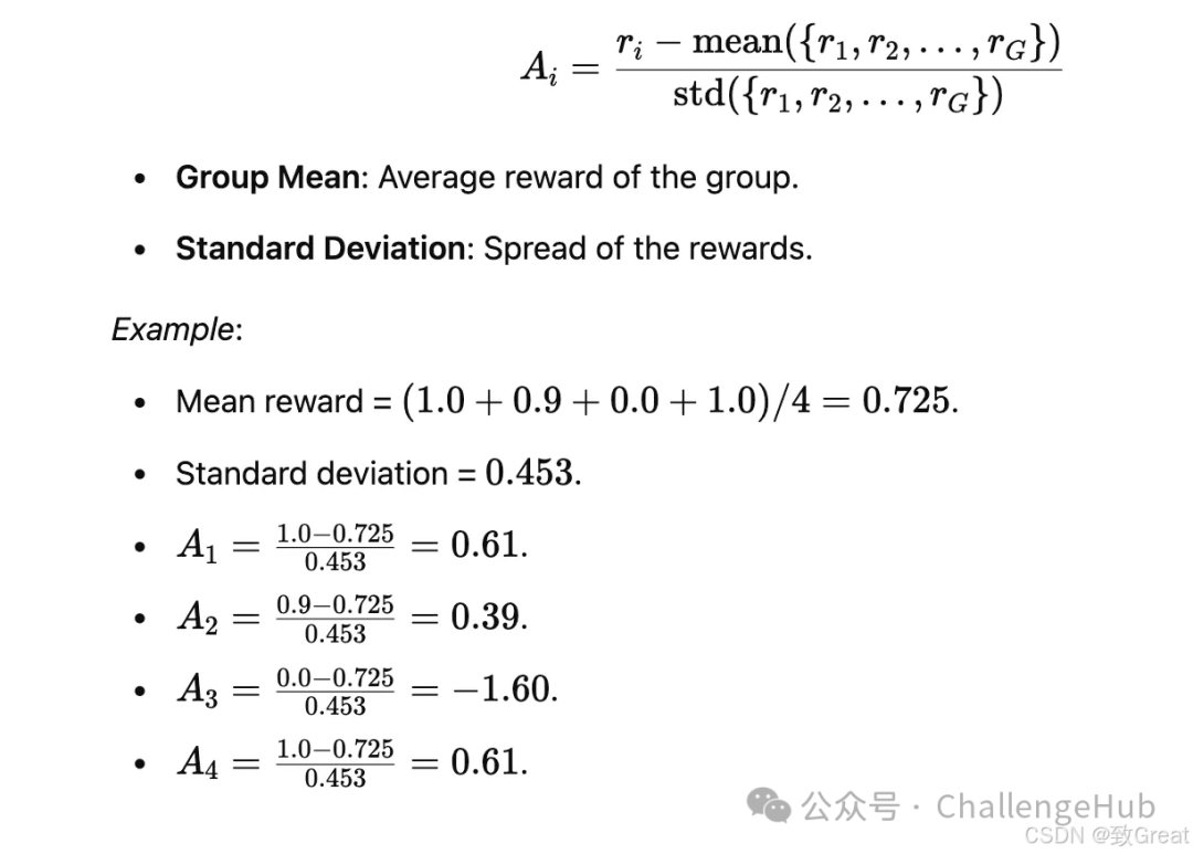 例如:r1=1.0(正确且格式良好)。r2=0.9(正确但不太正式)。r3=0.0(错误答案)。r4=1.0(正确且格式良好)。