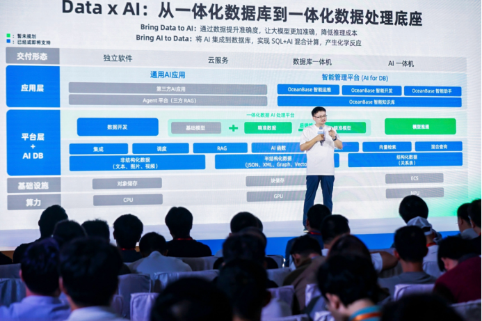 蚂蚁集团CTO何征宇在大会现场表示,蚂蚁集团将支持OceanBase在金融、医疗、生活等蚂蚁AI的核心场景的突破,支持OceanBase去实践DataxAI的理念和架构创新。同时继续支持OceanBase开源开放,把在Data×AI上的能力逐渐开放给行业,为AGI的梦想添砖加瓦。