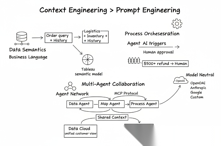 Salesforce 将这三者统称为“上下文工程”(Context Engineering),并认为这是区别于消费级 AI 的核心壁垒。