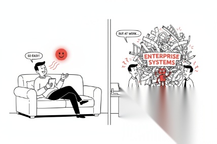 在家用手机与 ChatGPT 对话时体验流畅,但回到办公室打开企业系统,AI 能力却大打折扣。