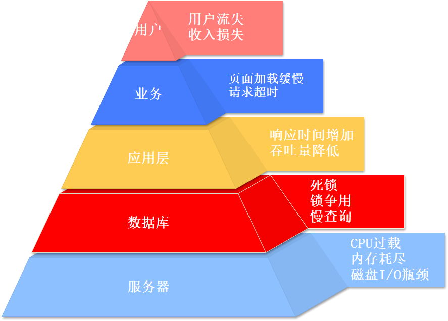 下图是系统在高并发场景下不同的层面的后果表现: