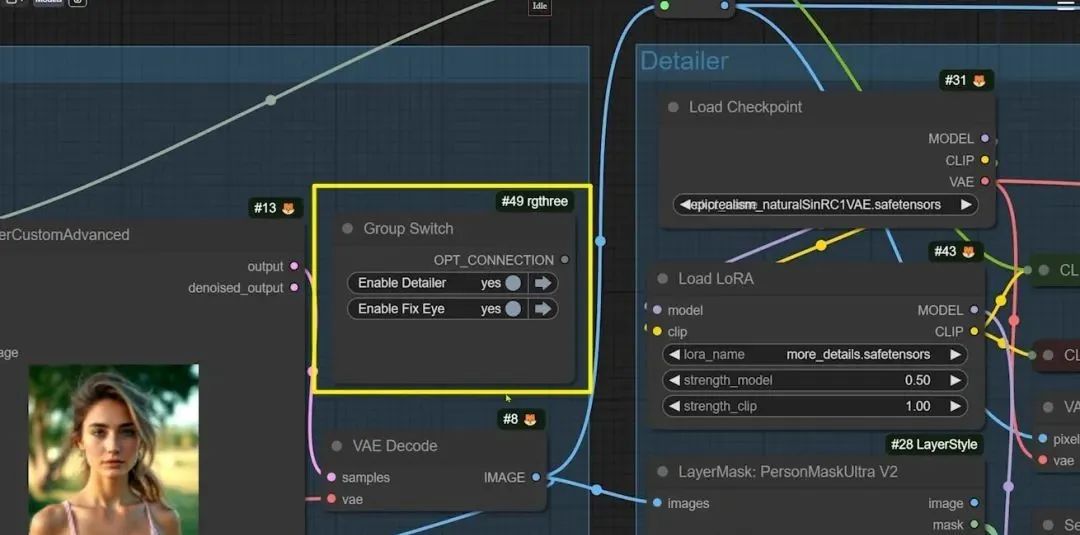1、🚀速度优化:在Flux的高性能处理中,不使用如“面部细化器(FaceDetailer)”这类资源密集型工具。这是因为Flux自身对显存的需求已经相当高,额外的细化器只会进一步拖慢我们的处理速度。