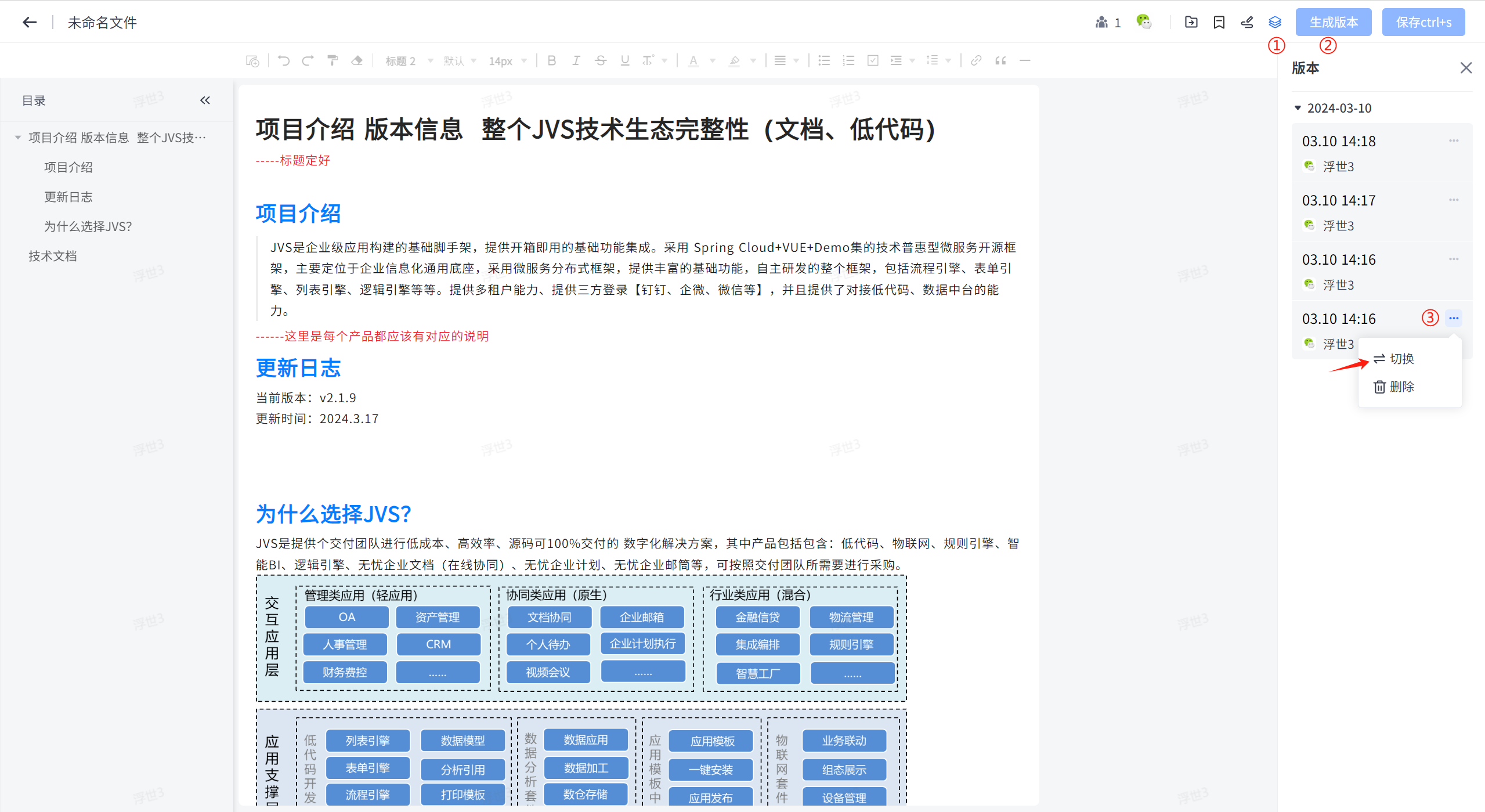高效协同编辑:无忧企业文档支持多人在线同步编辑,团队成员可以实时协作,内容实时同步,提高工作效率。此外,它还提供了历史版本回溯功能,用户可以查看和恢复之前的版本,避免误操作或意外删除带来的困扰。