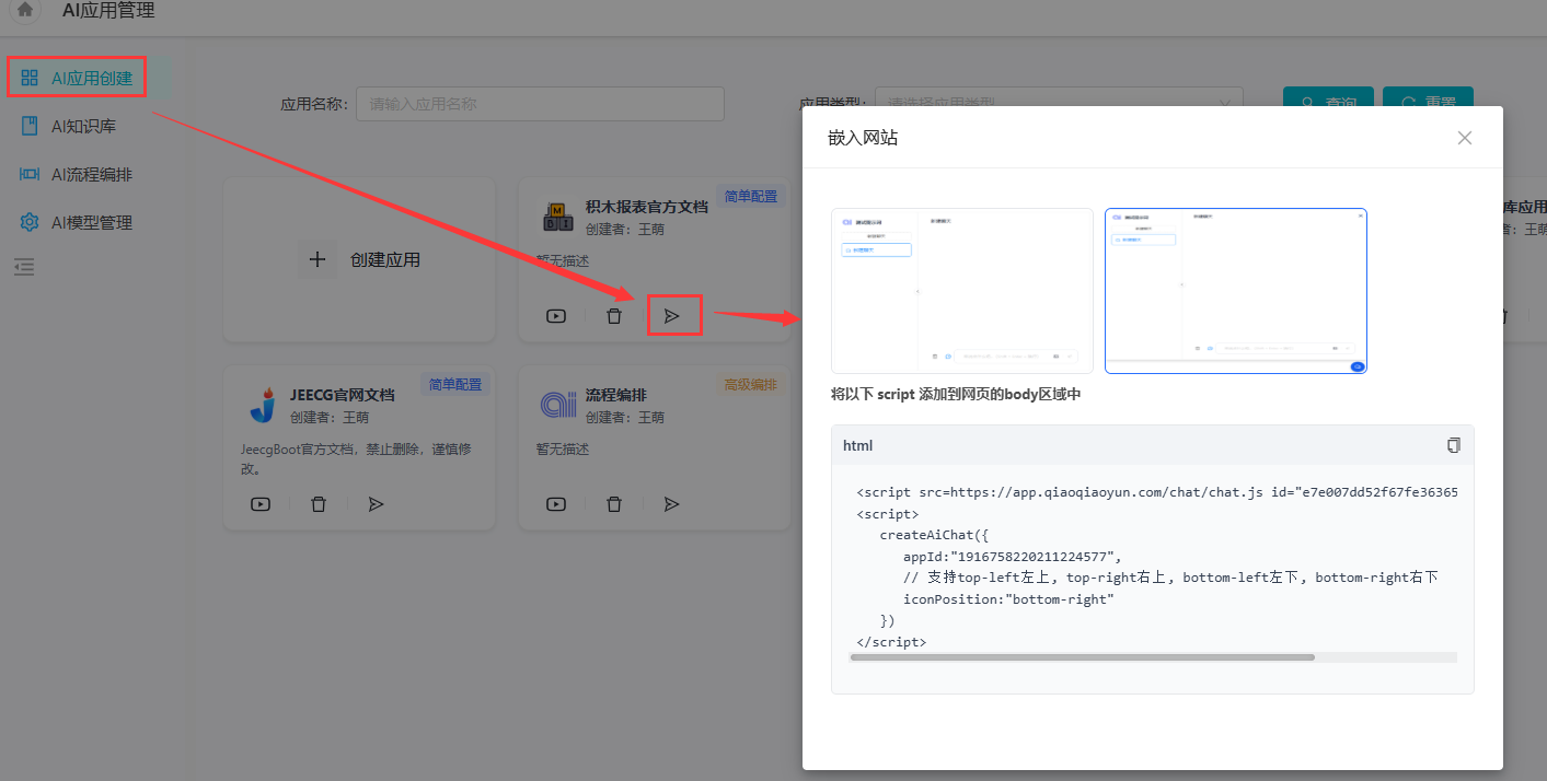 也可以将AI客服嵌入到你自己的项目中,快来试试吧!
