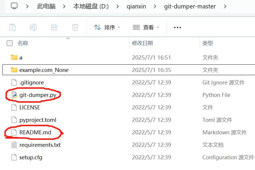 在git-dumper-master文件夹里的git-dumper python脚本文件处打开cmd命令行窗口