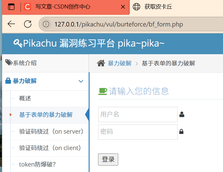 2.8 pikachu靶场练习暴力破解