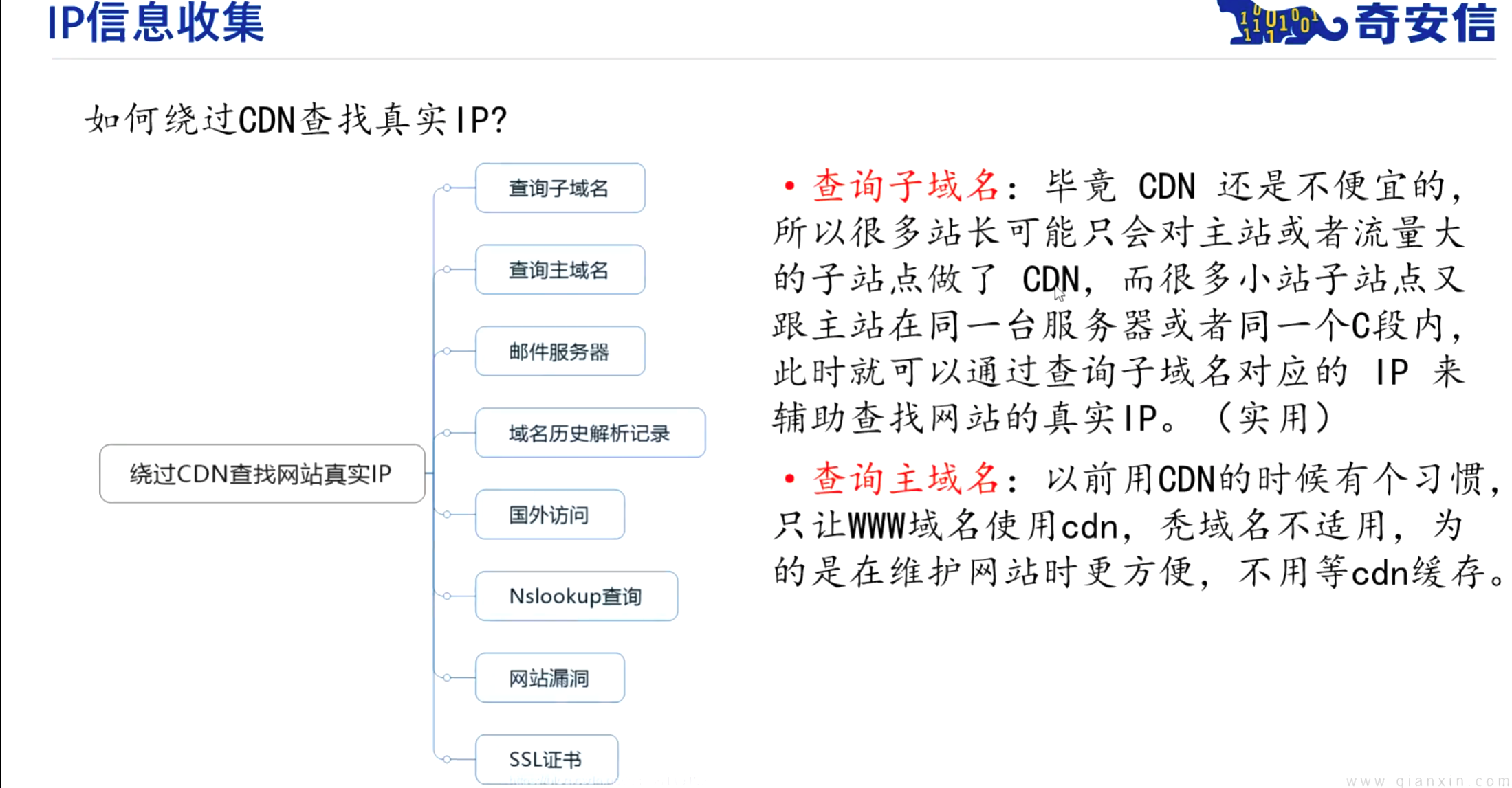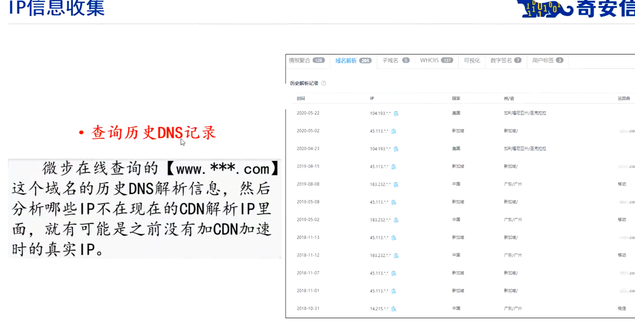 一开始网站访问人数比较少,没有做CDN,后面网站访问人数多了,开始做CDN。这样可以去查他最开始的DNS解析记录,找到他的历史ip。
