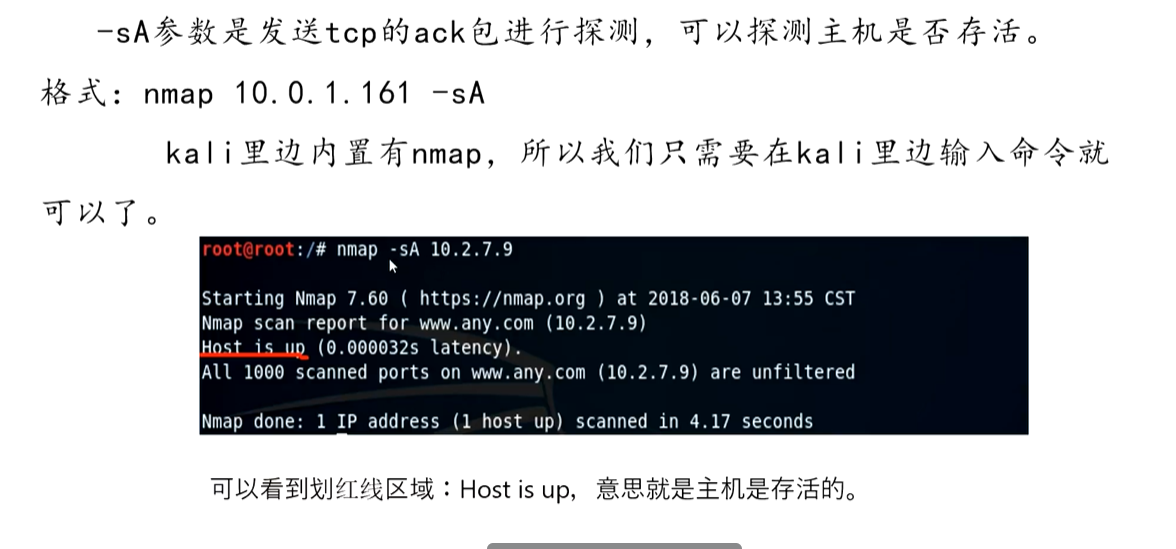 探测主机是否存活,一般是用ping命令,但是如果目标禁ping,ICMP报文是探测不到主机是否存活的