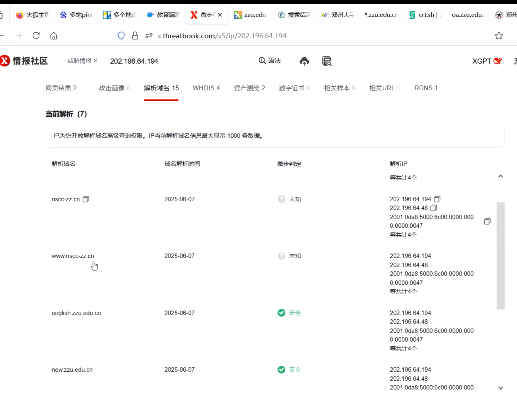 我们获取到这些子域名的正确 IP 之后,我们可以去反查一下,看一下我们的目标网站在不在他的