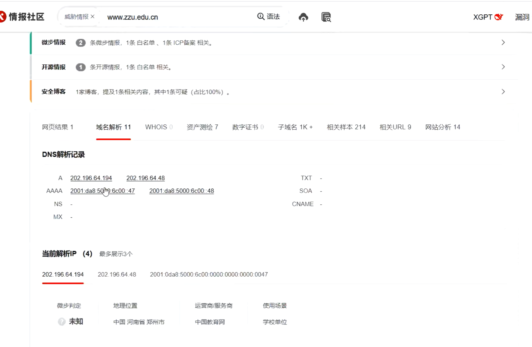 1.3.4 查询历史DNS解析记录