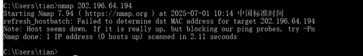 获取到真实ip后,先探测主机是否存活,然后对端口进行扫描,用nmap探测(kali自带)