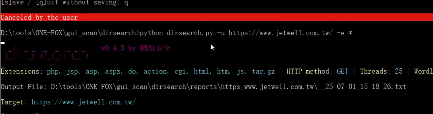 使用工具箱中的dirsearch目录扫描(主要记住使用语法)