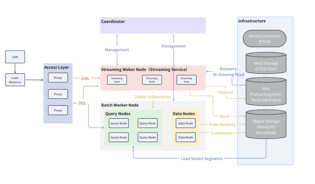 过去,我们爱过 Kafka,也用过 Pulsar,作为一款开源的向量数据库,Milvus 专为 AI 和搜索场景设计,其云原生架构从一开始就依赖外部消息队列来实现实时数据写入。
