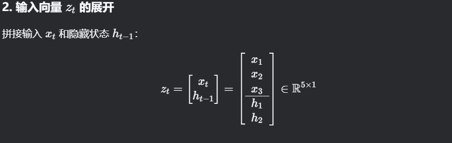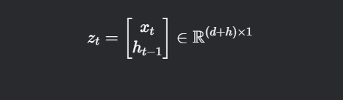 z = [x_t; h_{t-1}] # 维度 (d + h) × 1