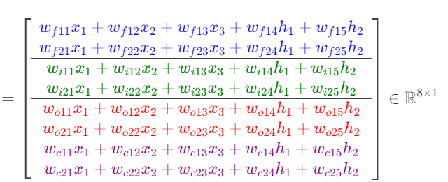 gates=W *zt+b∈R 4h×1,其中 W=[Wf Wi Wo Wc]∈R 4h×(d+h)