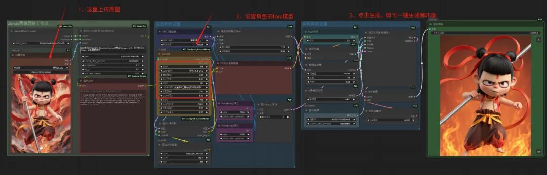 3、加载模型Flux大模型以及哪吒角色Lora模型
