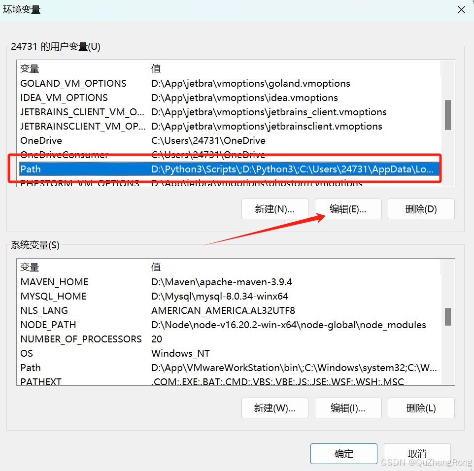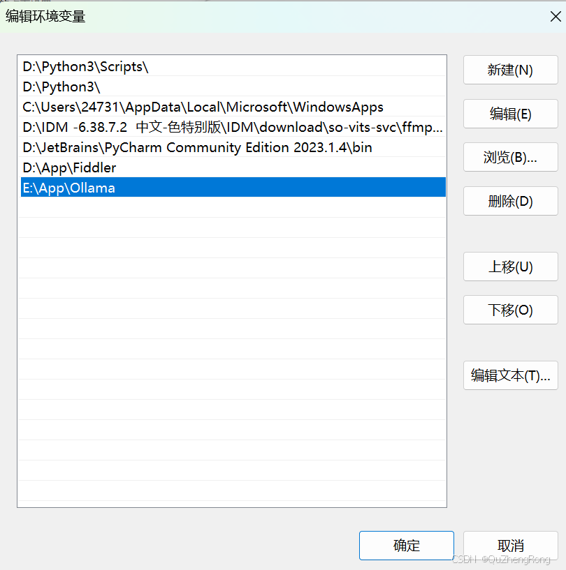 找到Path点击编辑,将Ollama安装路径改为迁移后的路径