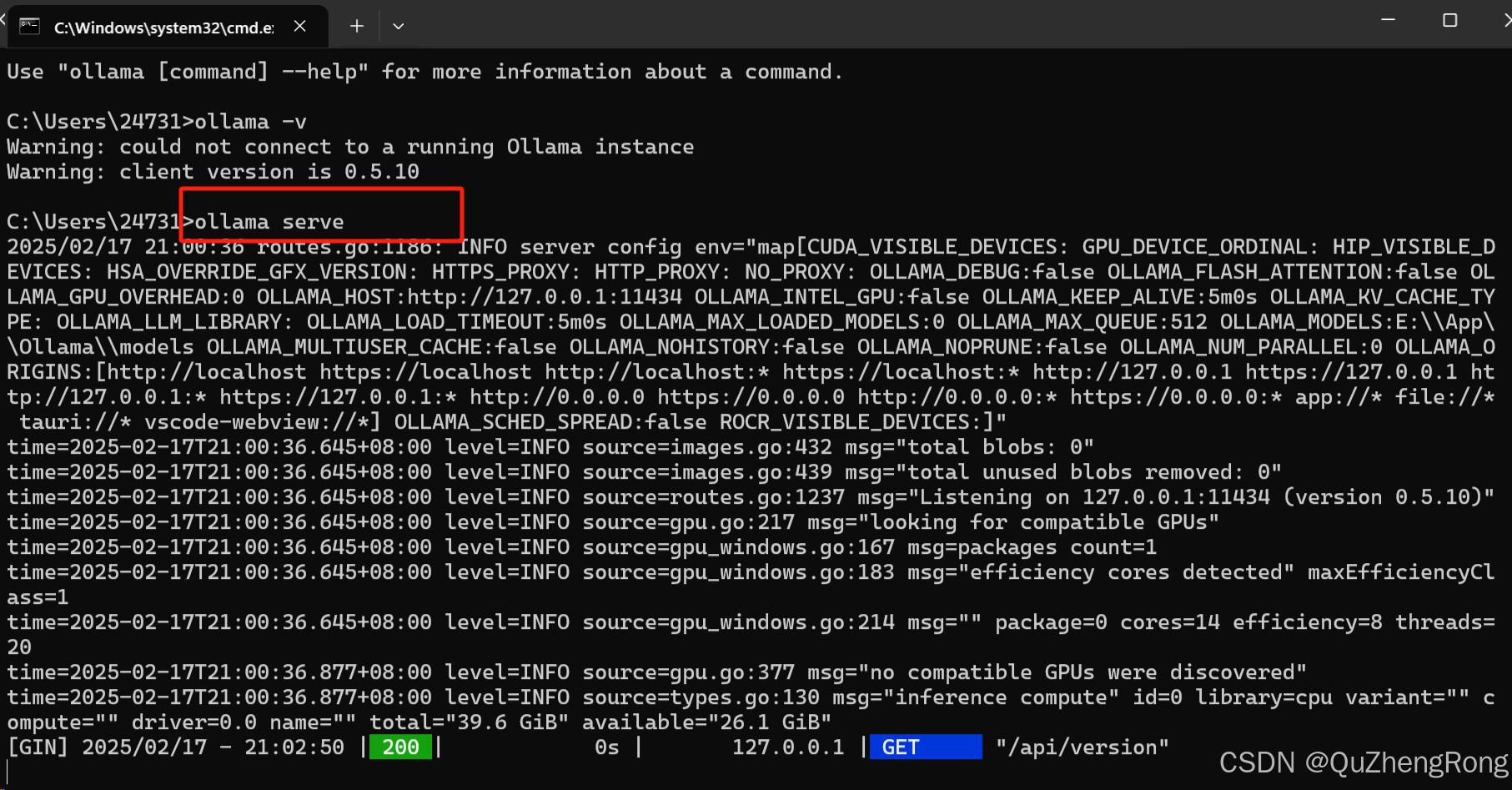 在命令窗口输入下面的指令启动ollama