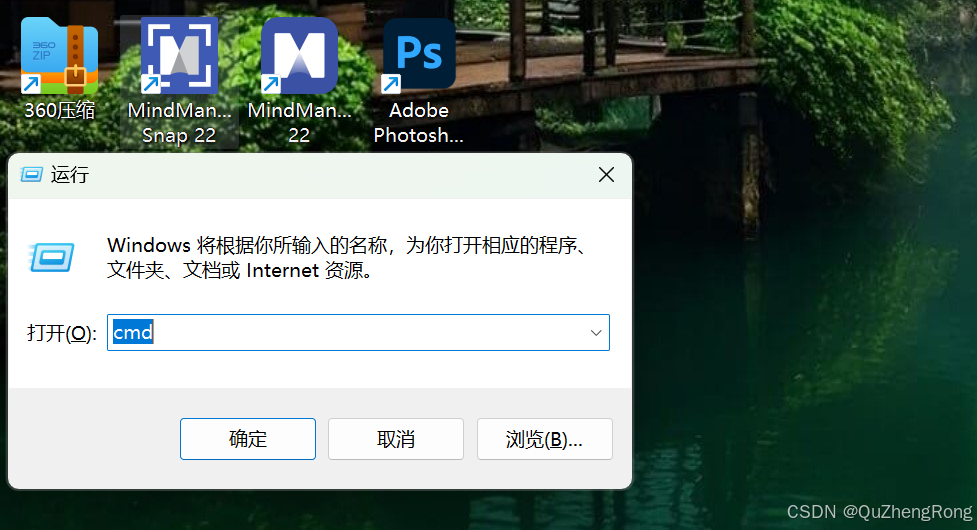 按住window + R,在运行窗口输入cmd,点击确定