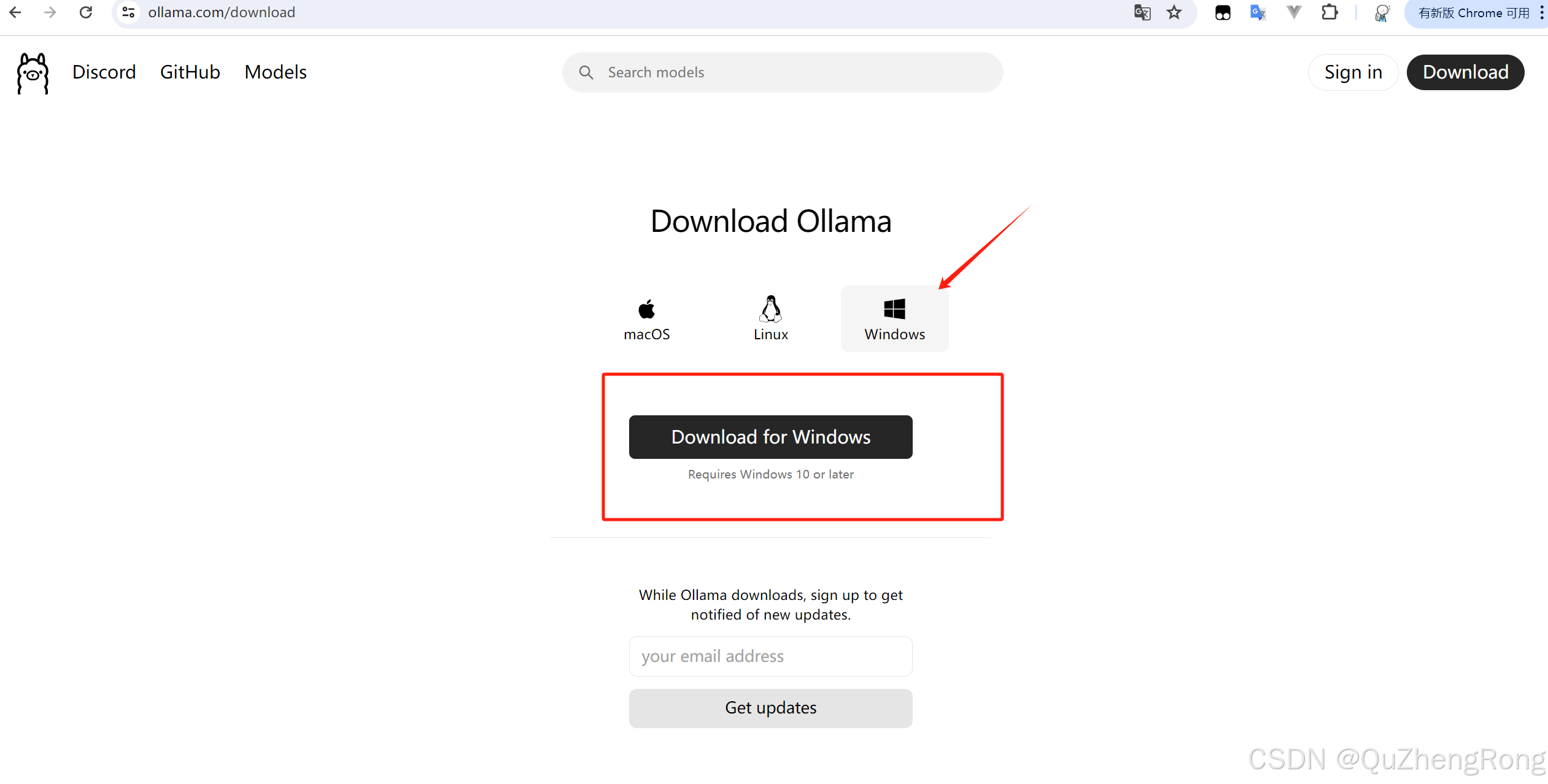 进入Ollama官网,点击下载window版本