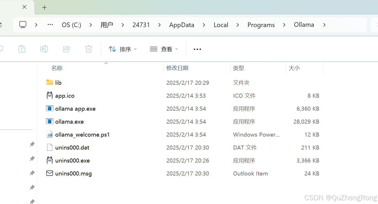 找到Ollama安装位置,win11默认为:C:\Users\替换为用户名\AppData\Local\Programs\Ollama