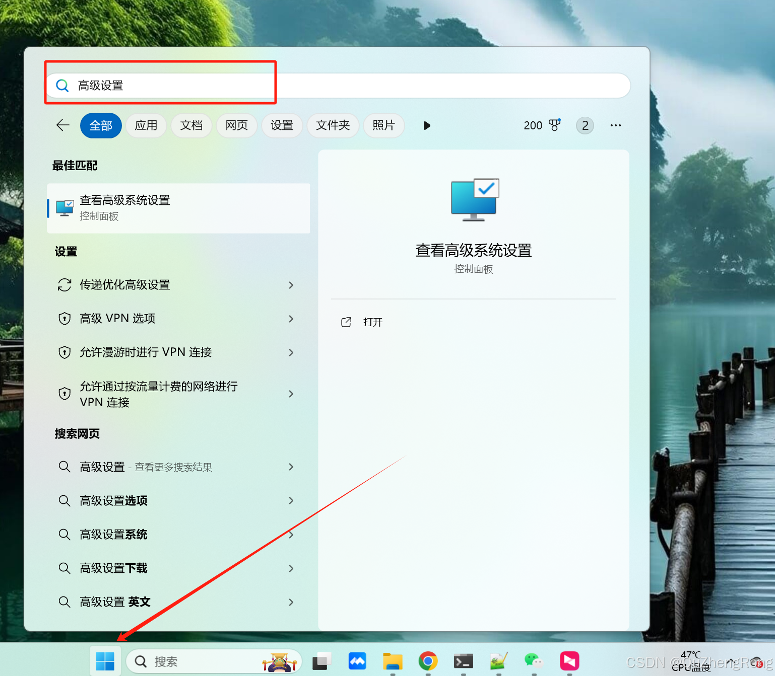 按window查找高级设置,点击进入