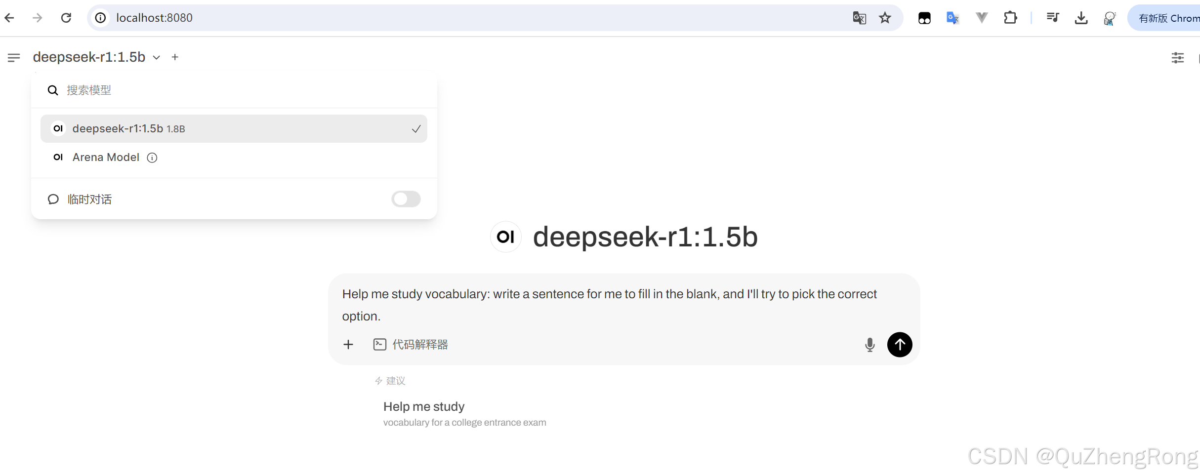 选择本地模型就可以进行交互了