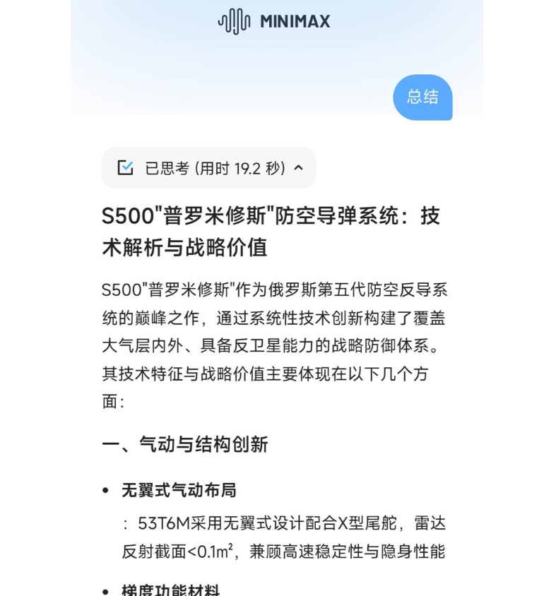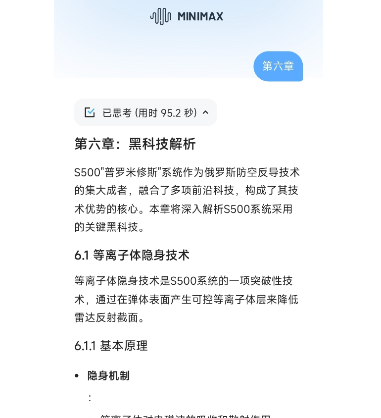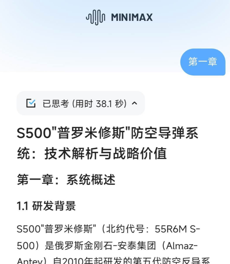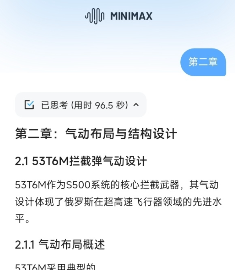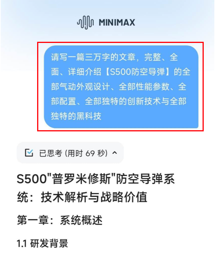 他要求MiniMax-M1输出3万字的S500防空导弹的详细介绍