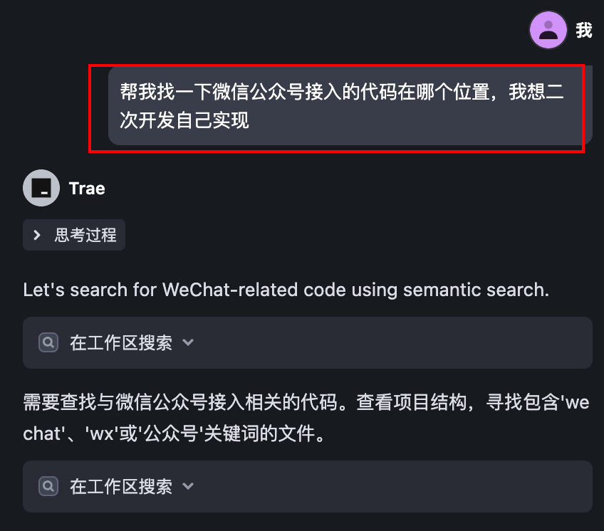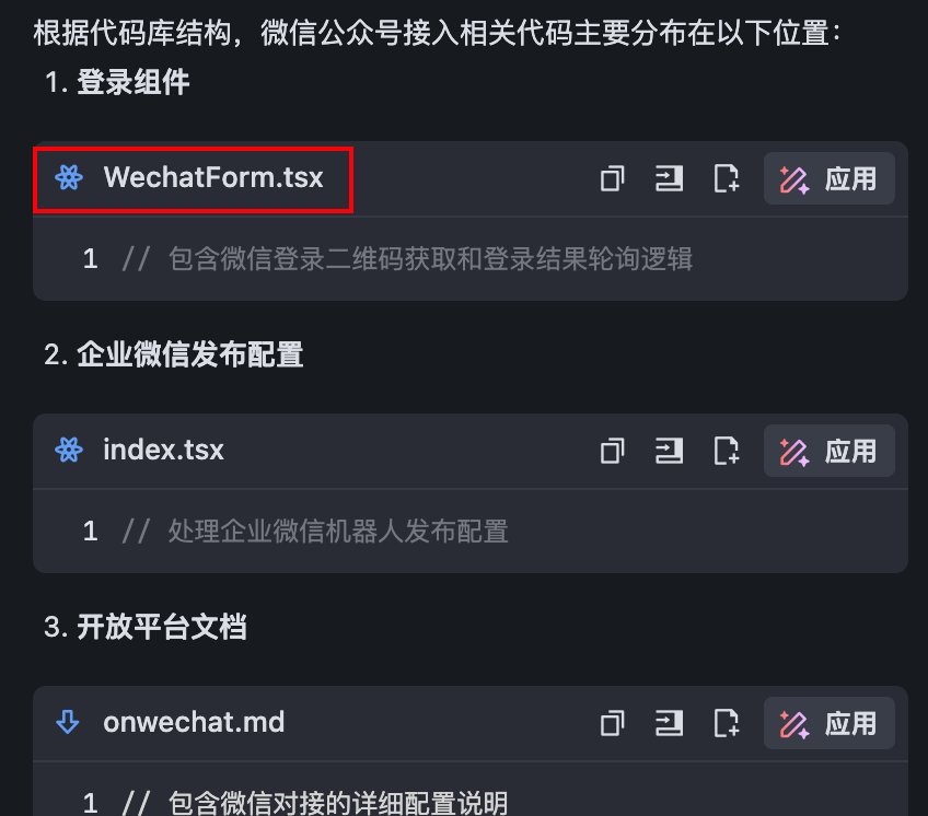 让MiniMax-M1查找微信公众号接入的代码位置,简直就是信手拈来。