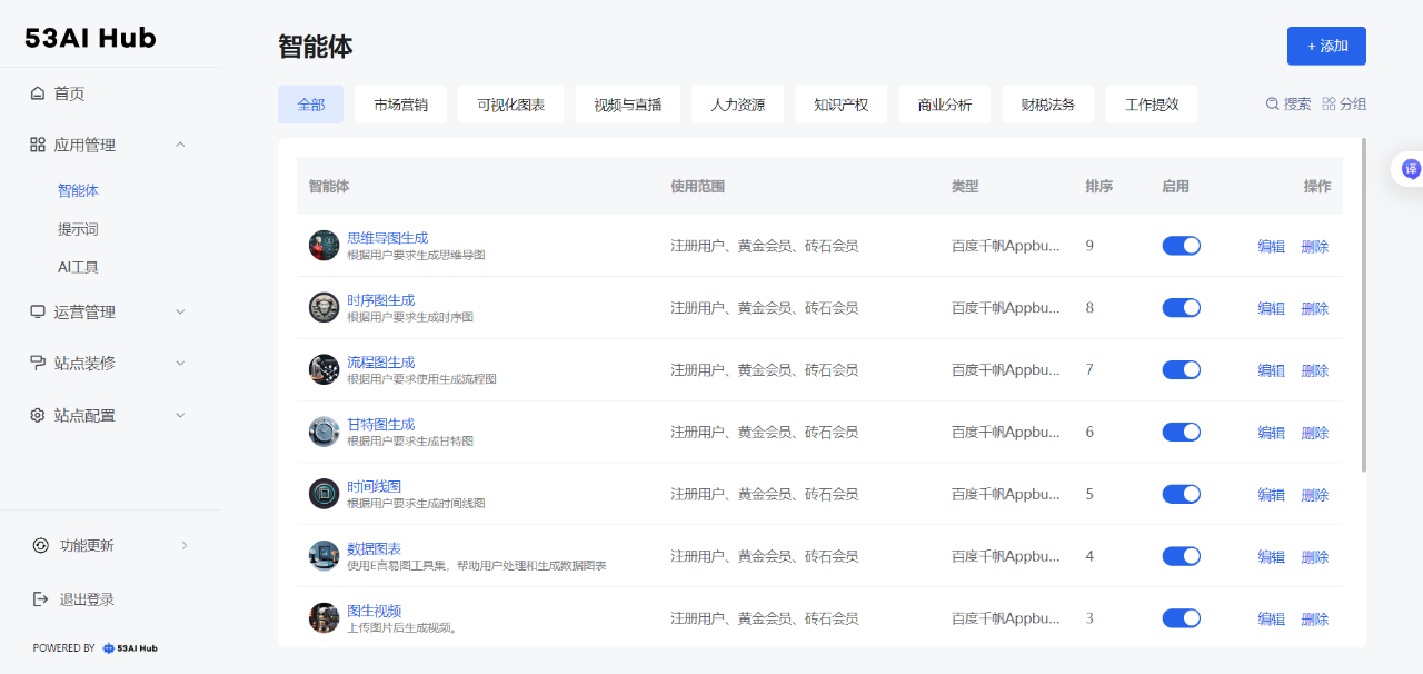 产品多了之后,我最怕的就是管理混乱,权限控制和内容管理是头疼大问题。53AI Hub 专门做了「智能体分组 + 权限系统」,哇塞,我直接笑了。