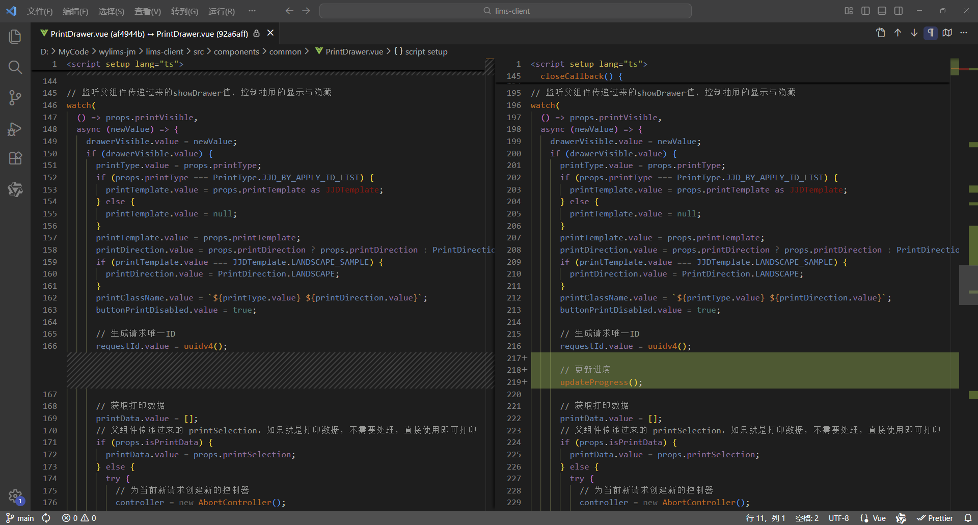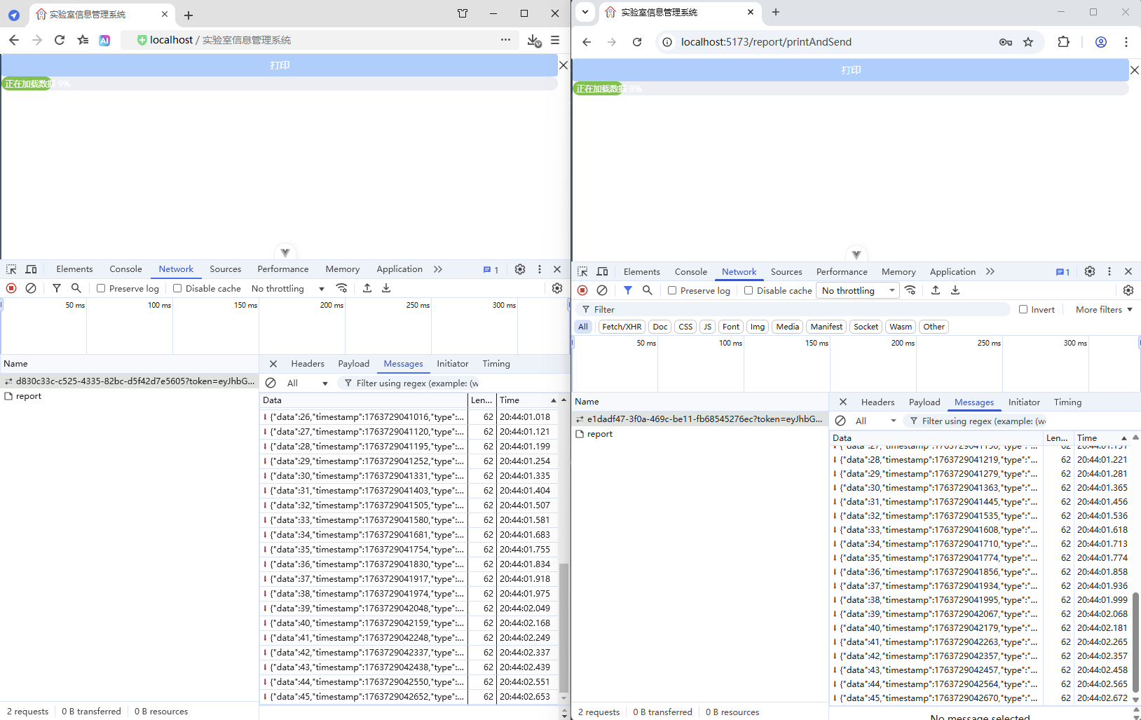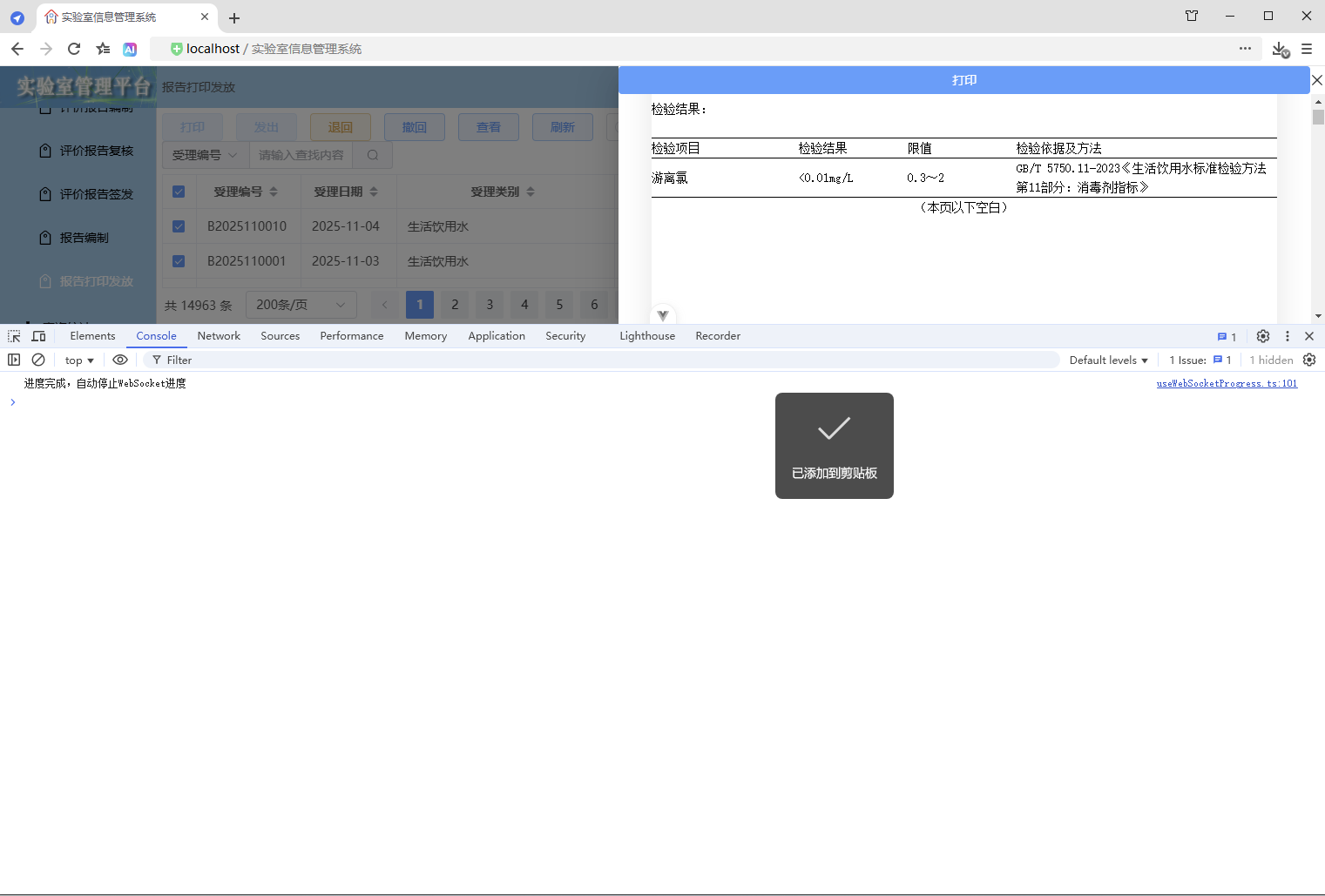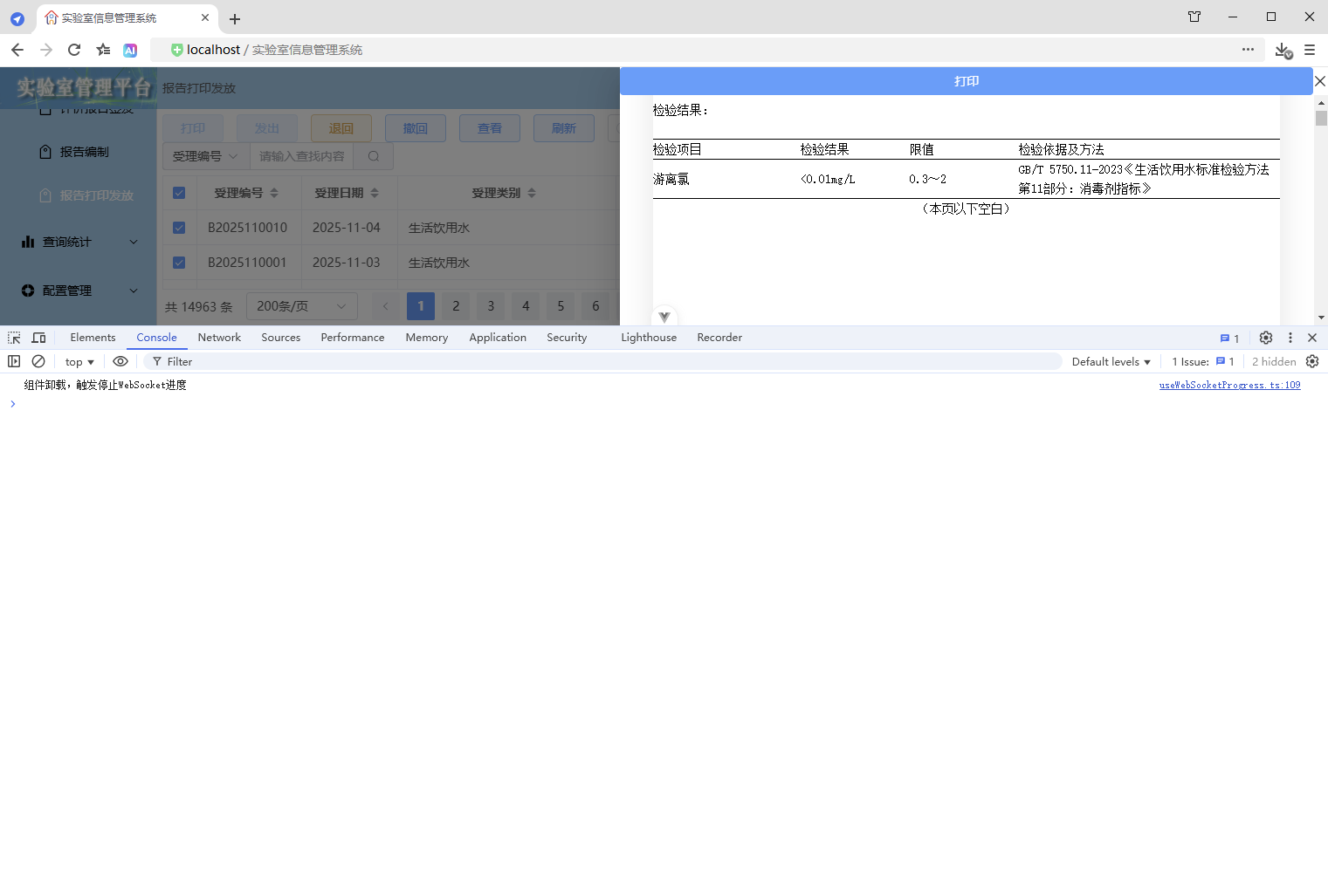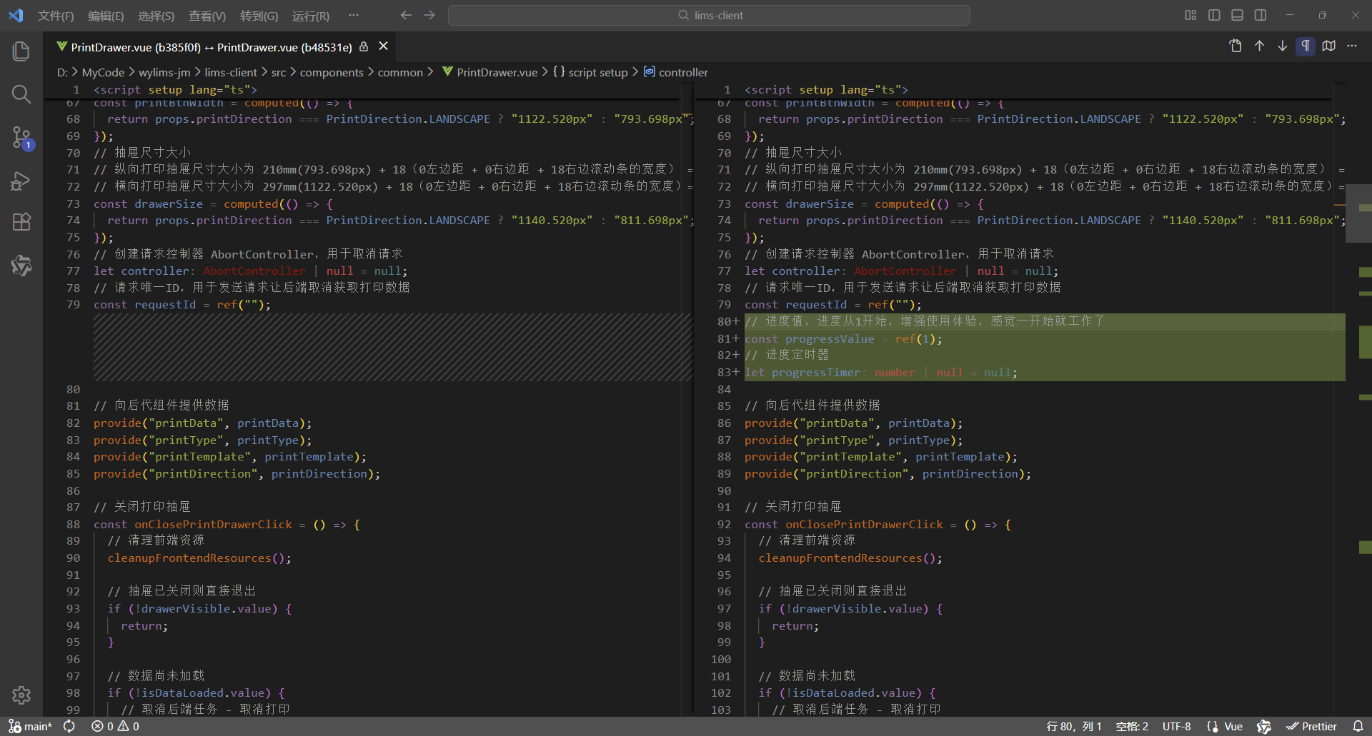 初始情况,打印没有进度条显示:点击【打印/查看】,弹出打印对话框,开始加载数据(200份报告),数据已加载,耗时41.42秒,这个过程页面一直没有变化,需增加进度显示,增强使用体验。原来的代码:打印抽屉。