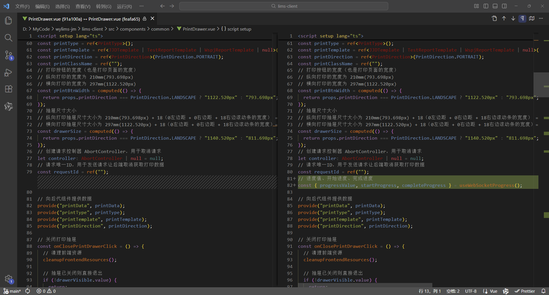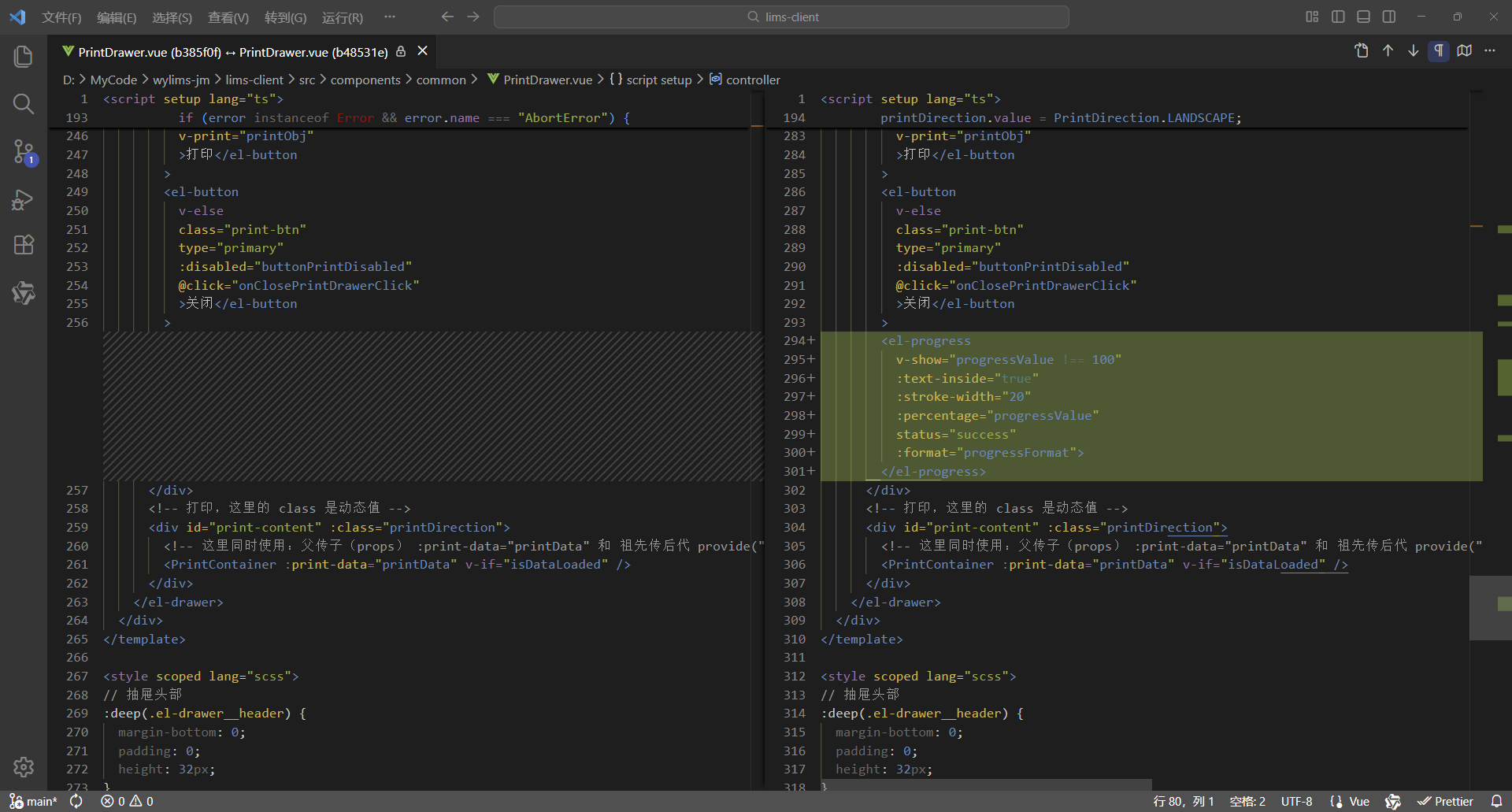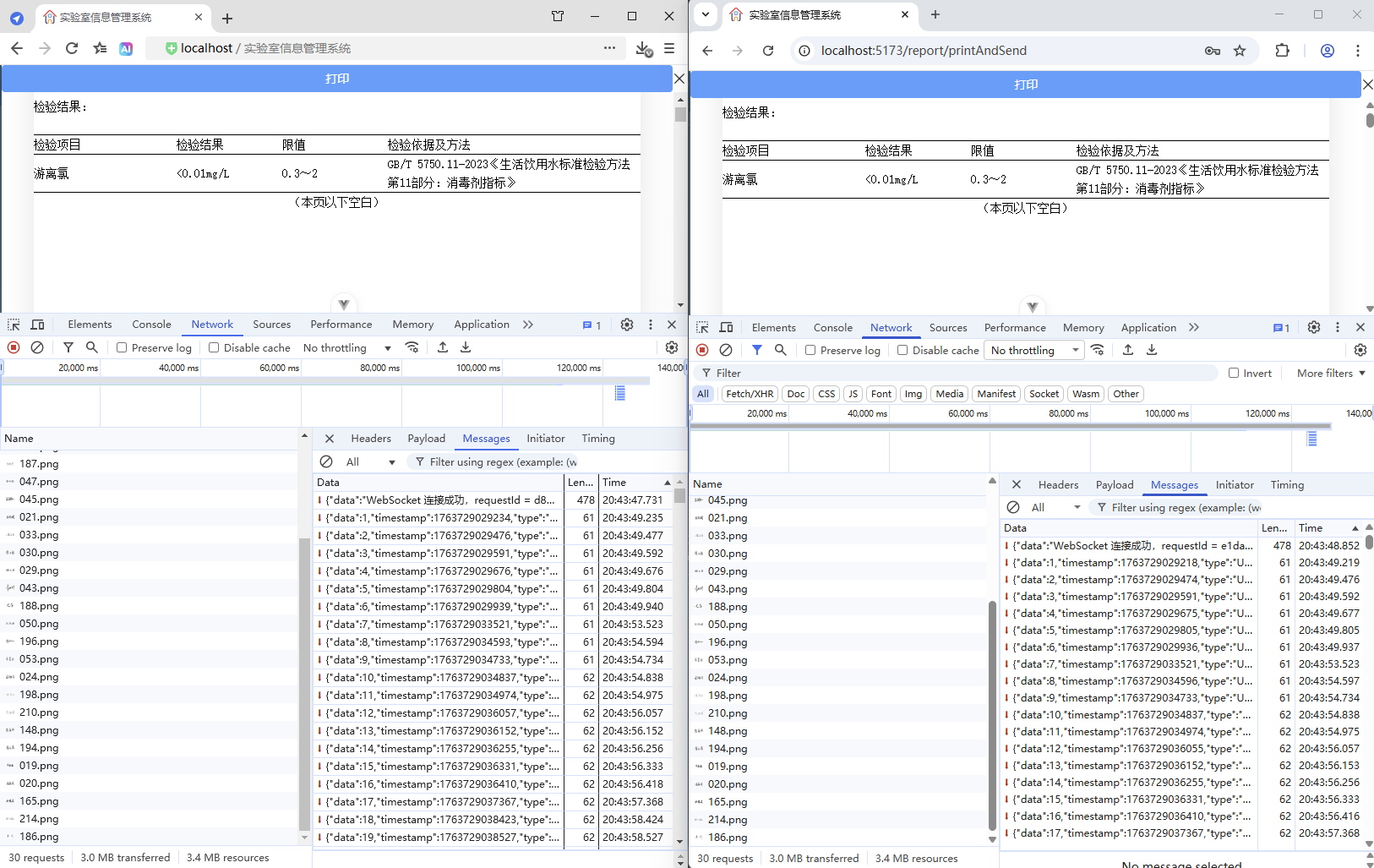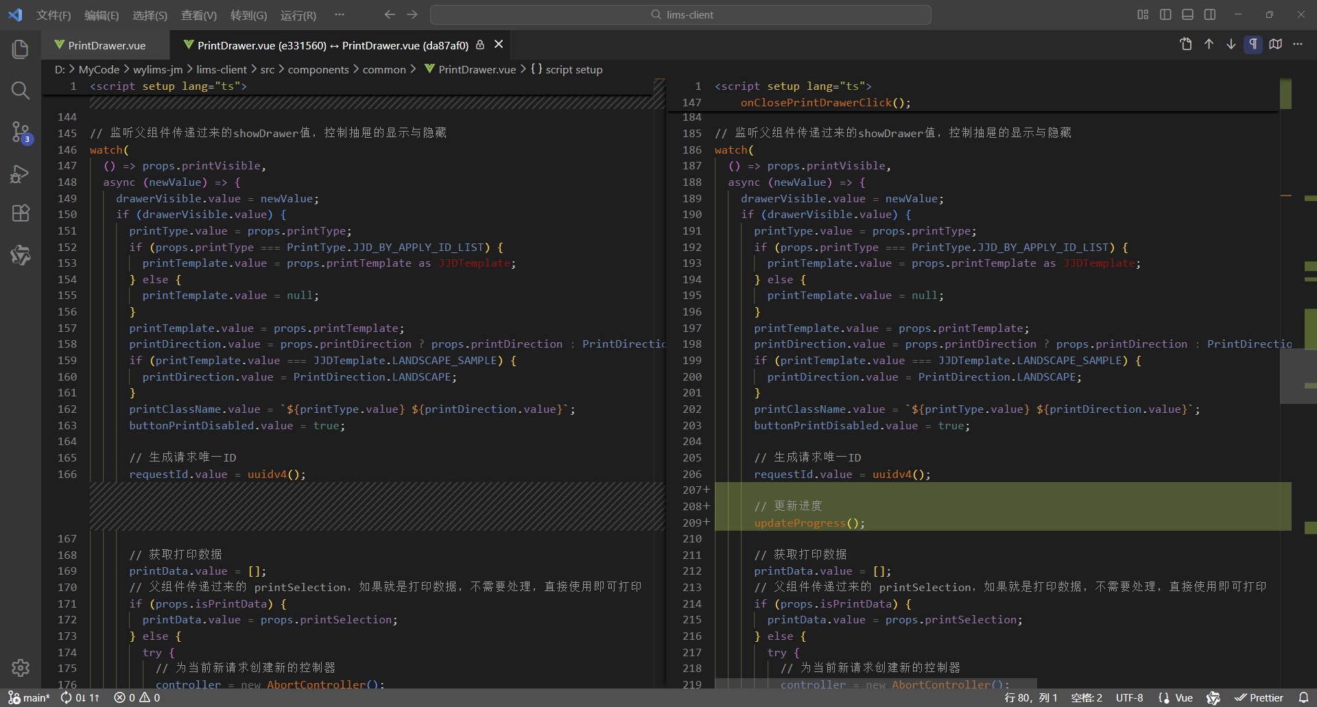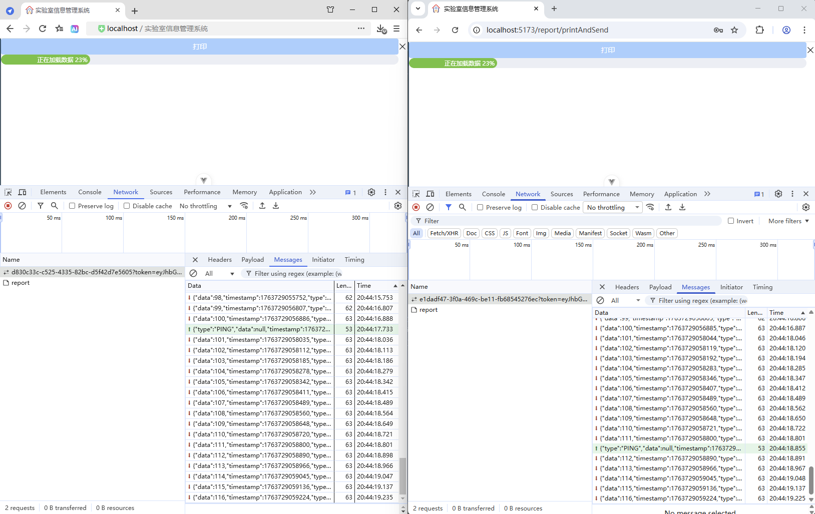 初始情况,打印没有进度条显示:点击【打印/查看】,弹出打印对话框,开始加载数据(200份报告),数据已加载,耗时41.42秒,这个过程页面一直没有变化,需增加进度显示,增强使用体验。原来的代码:打印抽屉。