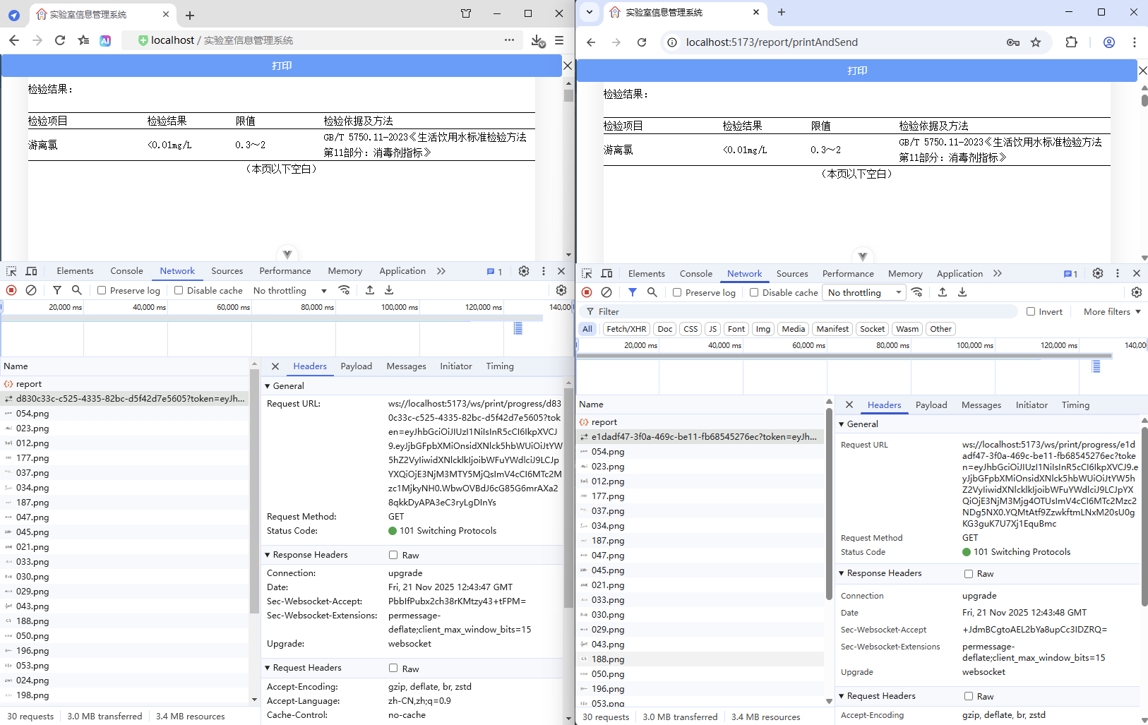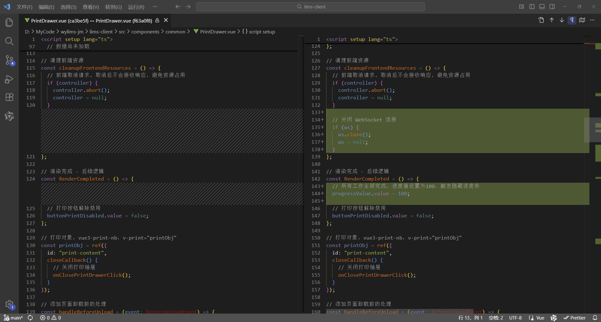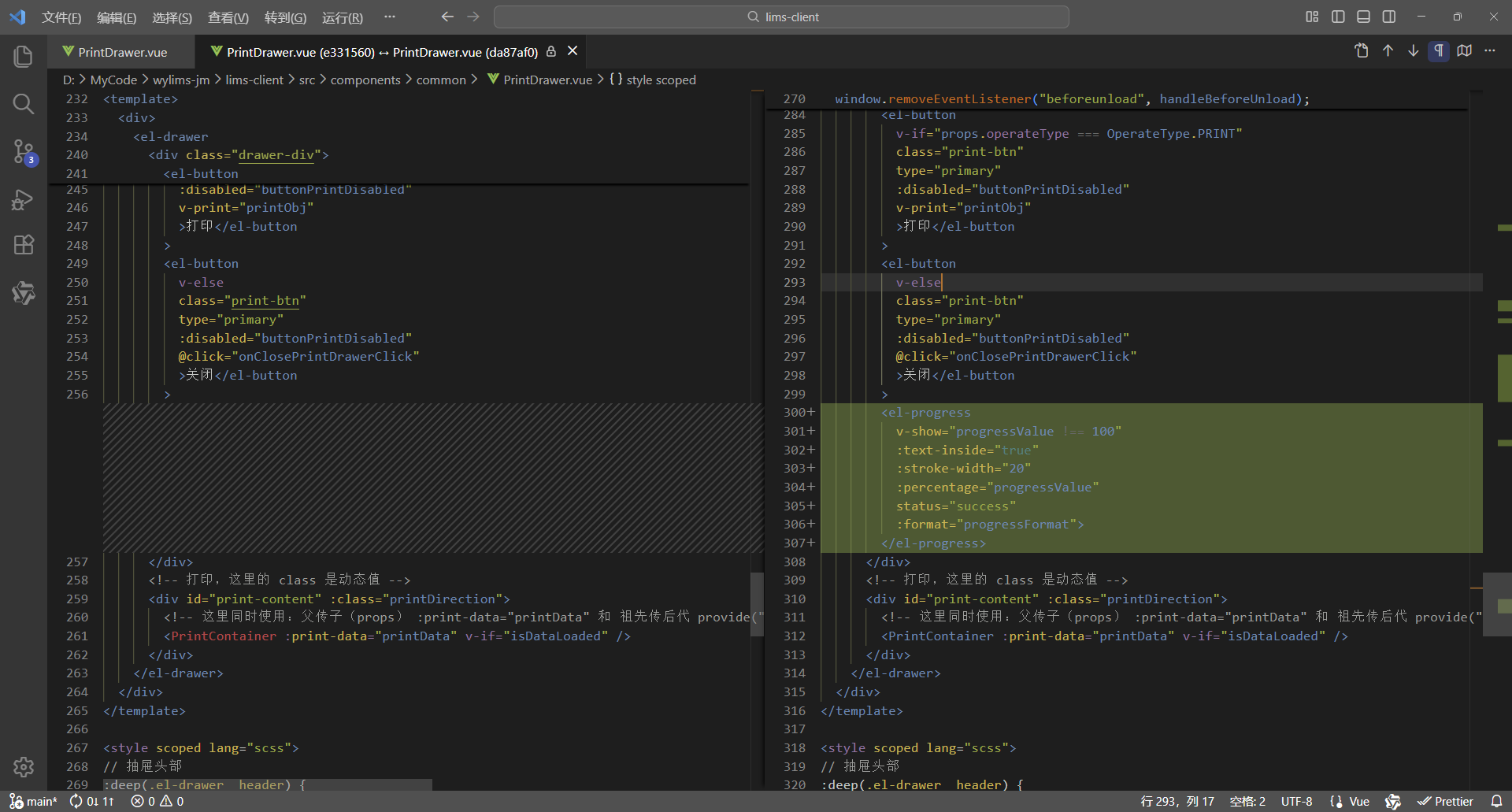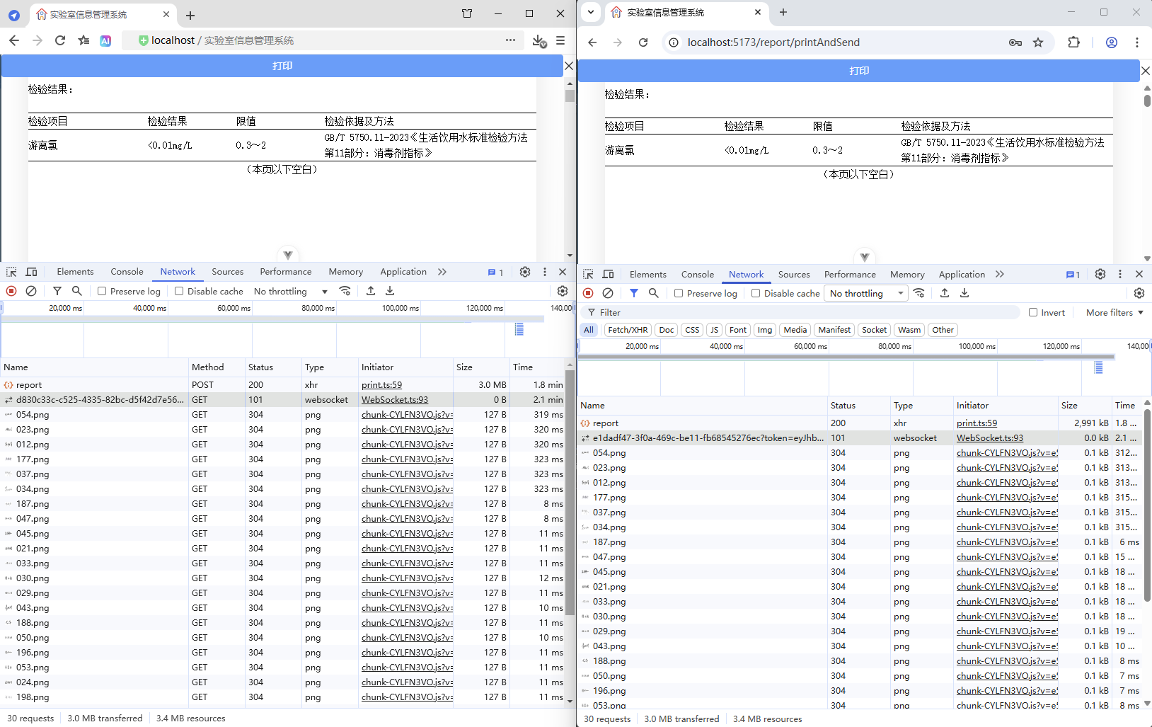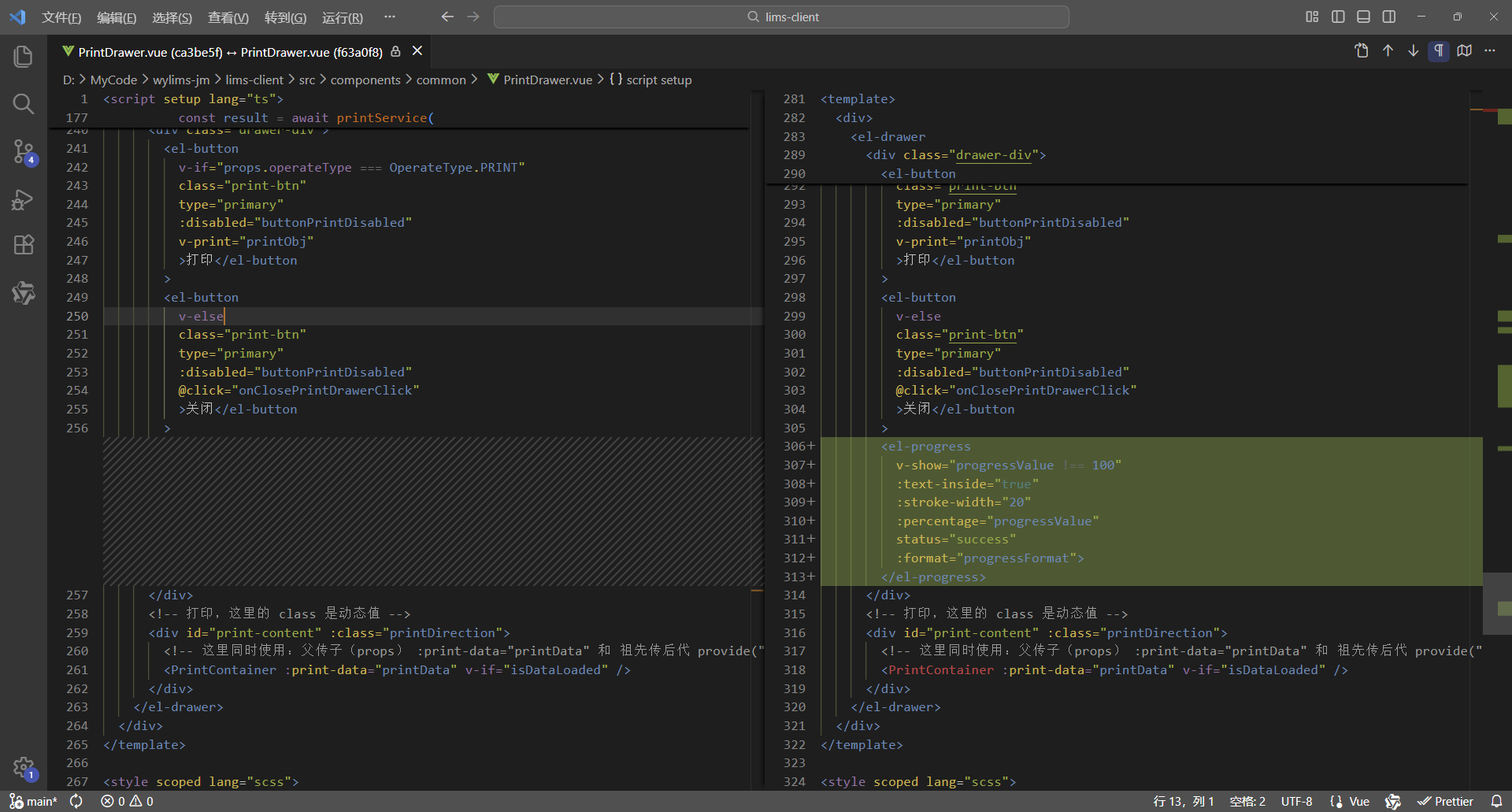 初始情况,打印没有进度条显示:点击【打印/查看】,弹出打印对话框,开始加载数据(200份报告),数据已加载,耗时41.42秒,这个过程页面一直没有变化,需增加进度显示,增强使用体验。原来的代码:打印抽屉。